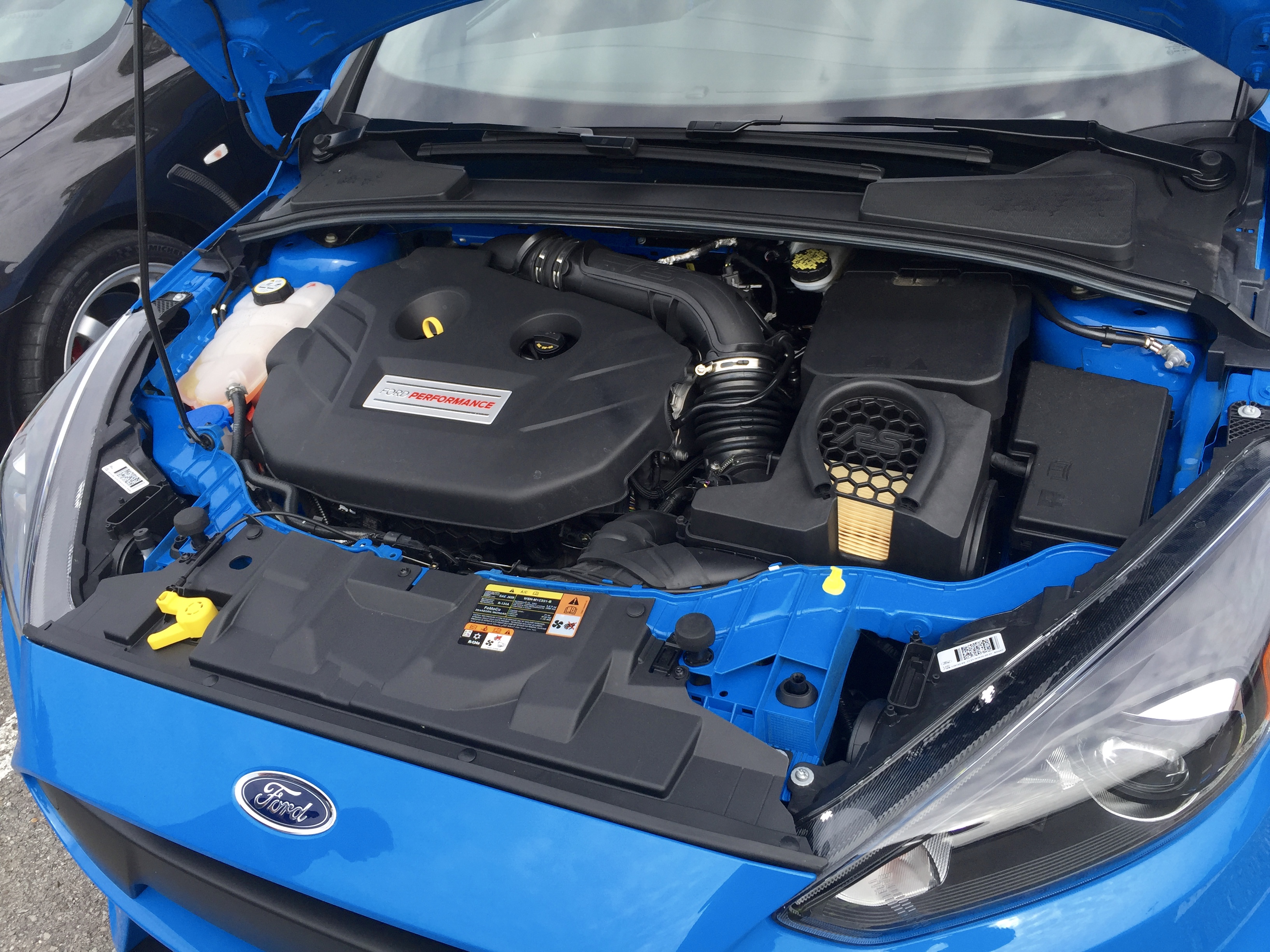 The view under the hood is a slight letdown, like most modern cars. The factory intake with exposed paper element looks chintzy. I also think the glued-on intercooler block off plate just looks cheap, out of place, and needs to go.
