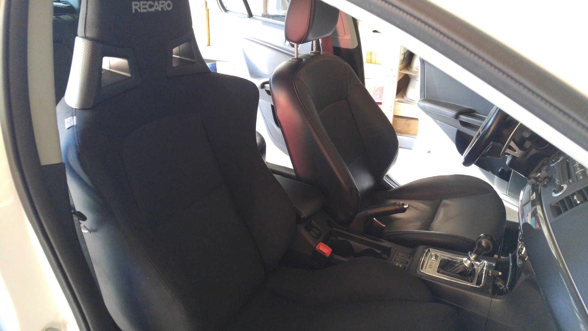 7. After you have reconnected the passenger seat-belt bolt to the Recaro (easier to do outside of the car), place passenger Recaro seat back into the car and reconnect all the connections.