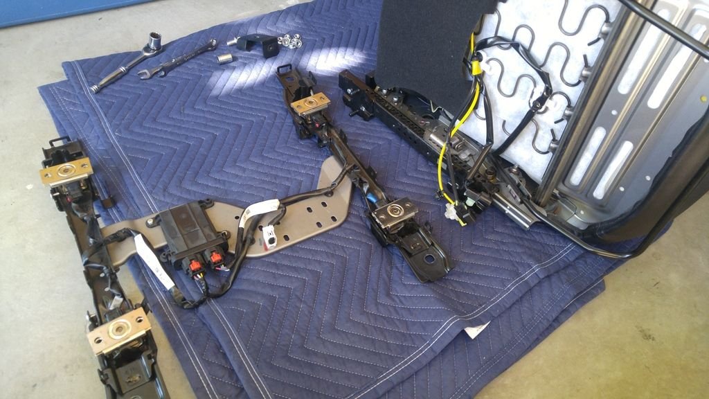 2. Started with passenger side seat, removed plastic and 4 bolts that bolt seat to floor, this gave me room to disconnect all connections under seat.
