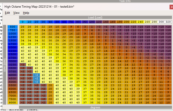 For the up shifts, I THINK you need to be looking at the "Lower Bound Ignition Timing" map too. If I remember correctly, this table limits how much you can retard your ignition timing. So, for example, I see you have -7 in this table, if the "Lower Bound Ignition Timing" has higher values (less negative/more positive) in the same cells, then the timing retard won't go past what's in the "Lower Bound Ignition Timing" table.
