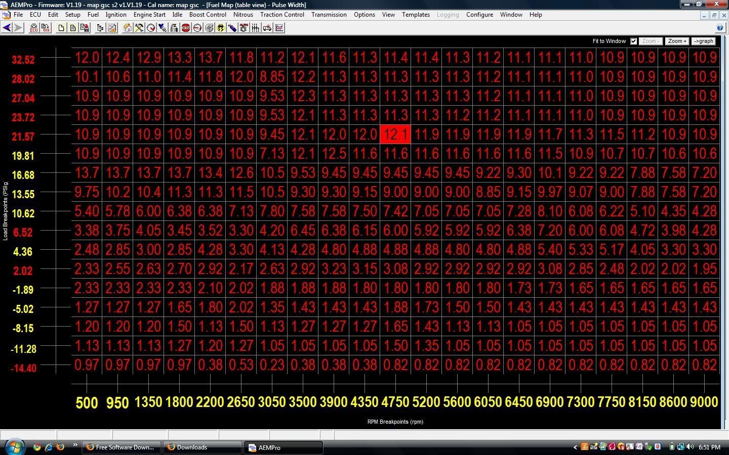 If so, then you are wrong. You are looking at your map in injector pulse width, not AFR. On the AEM EMS, when you are working with the FUEL MAP there is no way to see it based on desired AFR, only RAW, PULSE WIDTH, and DUTY CYCLE.
