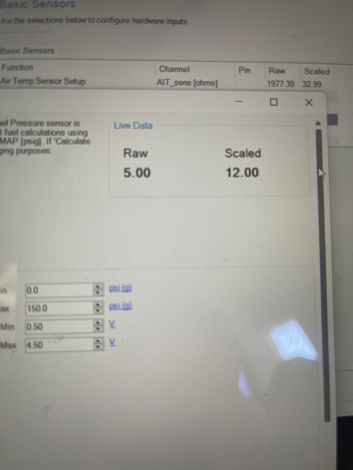So, I went over the wiring and redid the harness to the Aux plug and now the reading is sitting at for a raw valve is 0.46 but still shows 12 psi. is that cause the power its seeing its out of range lie you said for the 5.00 raw valve?