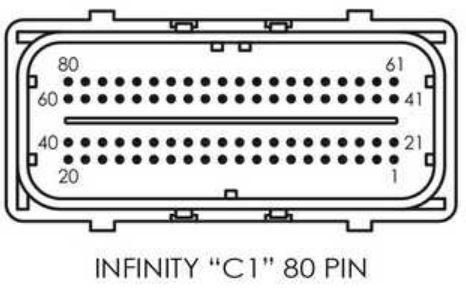 Here's a picture for the pinout on the Infinity 506. This should be as if you were looking at the Infinity itself without the adapter harness plugged into it.
