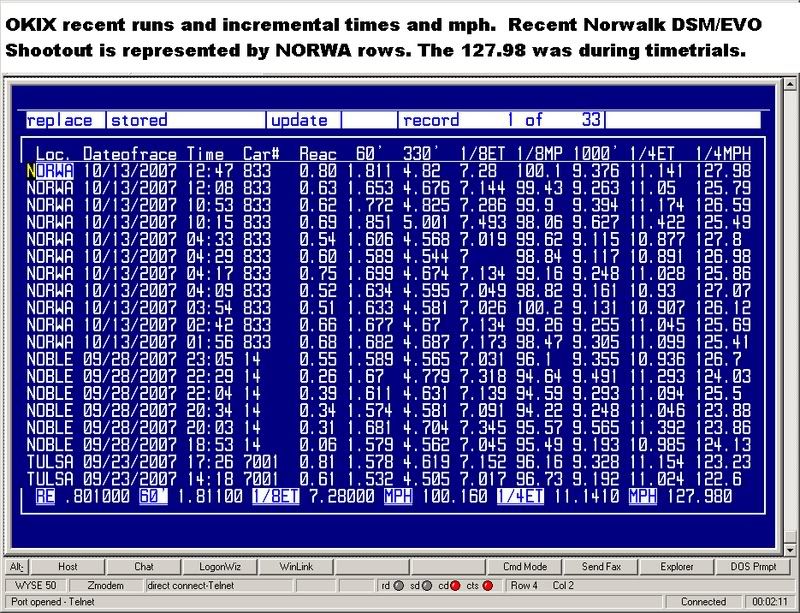 Sorry dudical26, I didn't realize that OKIX had run a 127.98 during the shootout. I thought that the et/mph needed to be during the same run. Here's the list of the runs. Top row is the 127.98. It won't change position any, but just needed to be corrected. Thanks