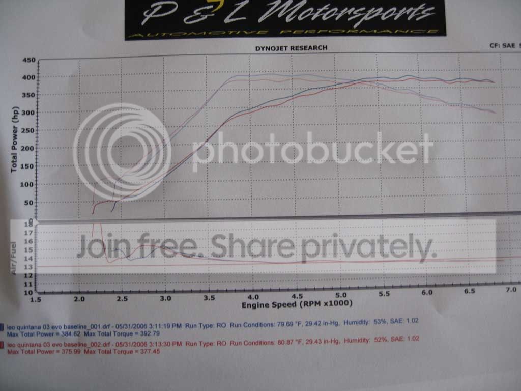Ok guys, I just got my custom tune, and before I continue this is not bashing anybody or nothing I am jus in here trying to look for answers of what could be "wrong" if anything with my car.....The custom took place Saturday....I have my own wideband which AL tells me its off its not readin correctly, its about 2/3's of a point off....I said cool, I will look into it and recalibrated two days later...BUT car ran "fine" that day according to ALs wideband and mine still read a little into mid 12s....two days later I started noticing the a/fs a little up there compared to what they were before....in the low 12s....I thought my wideband is still off so I went to go Dyno where I could get a wideband readin as well and see if it is off or not...I go there and I get 3 pulls and numbers are below as you can see I am very happy with the numbers first pull was 384whp 392 tq boost peaks at 28 psi drops down to like 24 at redline....But what I am not happy about is the A/F which which on my wideband read what their wideband was readin, so I am a little puzzled here not sure what is going on, I am running pump gas 93 oct with 100% VP methanol...I dont get it because sometimes the a/f does stay at 11.6...11.7 but most of the time it does into the low to mid 12s.....any help would be greatly appreciated AL or anyone...Im not trying to blame anyone or anything, I am just trying to figure out whats going on.....thanks in advance for any help.....
