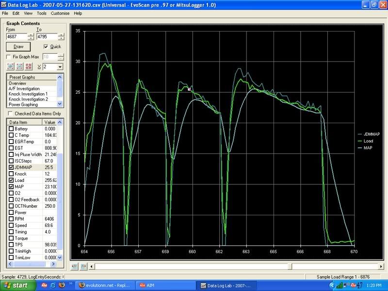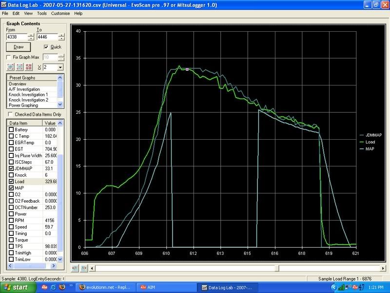 Here's load graphed with the map data. Keep in mind, my load is atypical due to the maft-pro with the GM MAF sensor. The JDM sensor seems to be tracking perfectly with load, though. Load is 2byte load.
