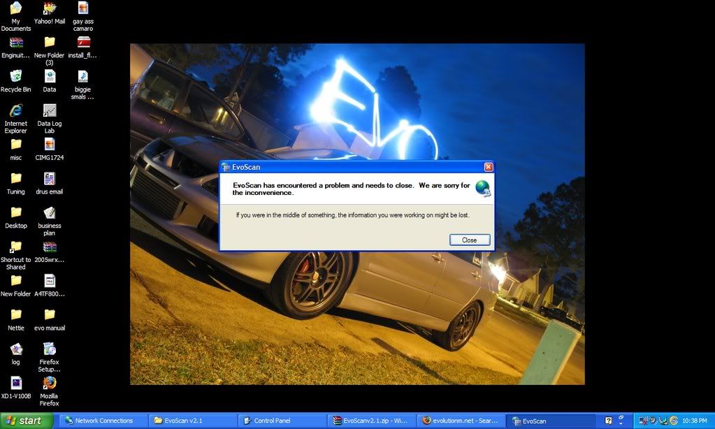 ok i have evoscan 2.1 and its been working fina and out of the blue i get this error message.