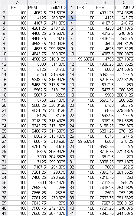 wow Kev, that's no little drop either. I really think something else is going on...injector scale change perhaps without accounting for it in the evoscan calculation maybe? then again that's probably 2byteload...hrmmm. If the airflow truly decreased that much the power would have dropped accordingly. I assume it was dyno'd after the change to get the power back where it was.