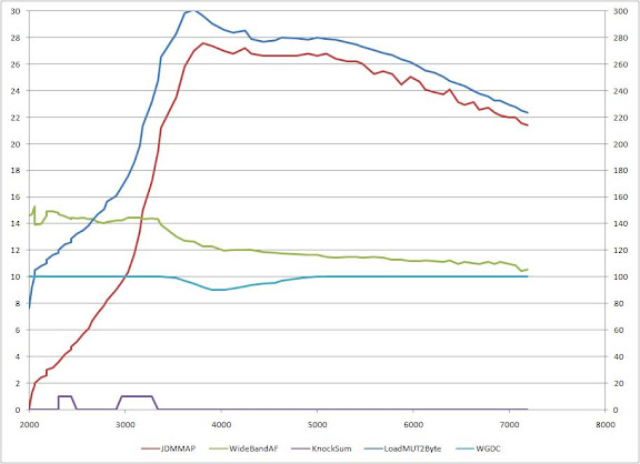 No matter what I do, I get 0 WGDC until 120 load, then it goes to 100%. I have 100% WGDC under 180 load, so I don't understand why it's not 100%. WTF. It's making my car very laggy and slow to respond. See my attached rom image. I also notice that the logged WGDC is about 15% higher than what is in my base wgdc map. Could this have anything to do with the fact that 03's start with 100% WGDC and 05's start with 0% WGDC? I logged gear, and it is reading the correct gear, but not following the base WGDC maps. FWIW, when I flash back to 94170015 v 5.10 it's back to 100% WGDC from the get go.