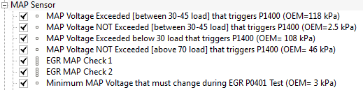 Here are the standard descriptions and below is what I used to help explain their use a bit more. I still havent dug into the EGR MAP check tables yet though.