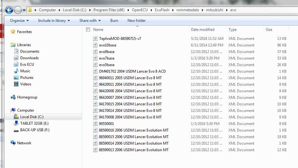 I have the tephra v7 XLM file in Rommetadata>Mitsubishi>Evo and all the other XLM files that came installed