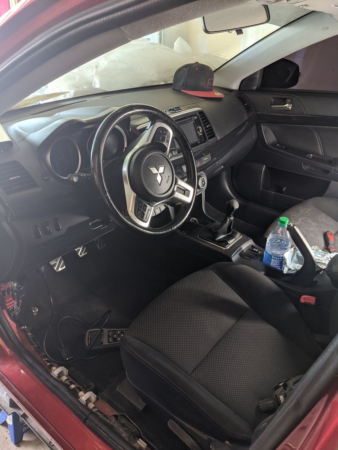Its not all that bad most of the heavy work it done. See the pictures for the progress, plus I got this quite cheap. I was thinking of swapping shells, but in the US everyone wants gold for these Evo's. The two harnsess that were toasted was the chassis harness and the engine harness but have already been replaced and quite cheap too. This may be the cheapest evo in the US right now. Only thing I got left is trying to find out why she doesnt crank, maybe immobilizer but I already programmed the key and the starter relay clicks on. before beginning work toasty ecu sanded rusted primered and rigidity check grey primer replacing chassis harness interior complete removed burnt pieced from old ecu to get a read front end whole shot another picture of chassis harness and old ecu.