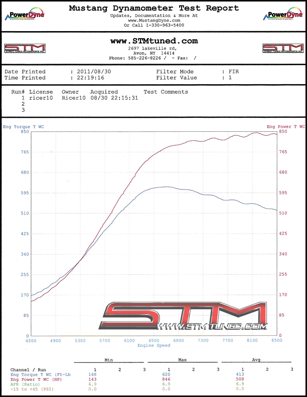 While we were here we decided to finally add a staging brake to the car and put it back on the dyno with a little more boost. Here is the new power graph.