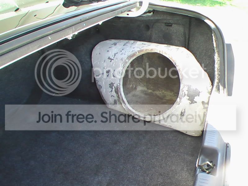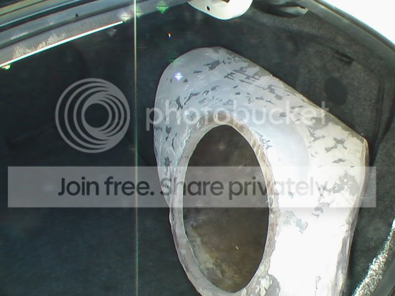 Hey everyone, i am making a custom fiberglass subwoofer box for the truck of our evos. this is the first one. it is made entirely of fiberglass, with a MDF donut for the sub to screw into. right now i am still in the process of sanding the surface smooth before i make a mold out of it.