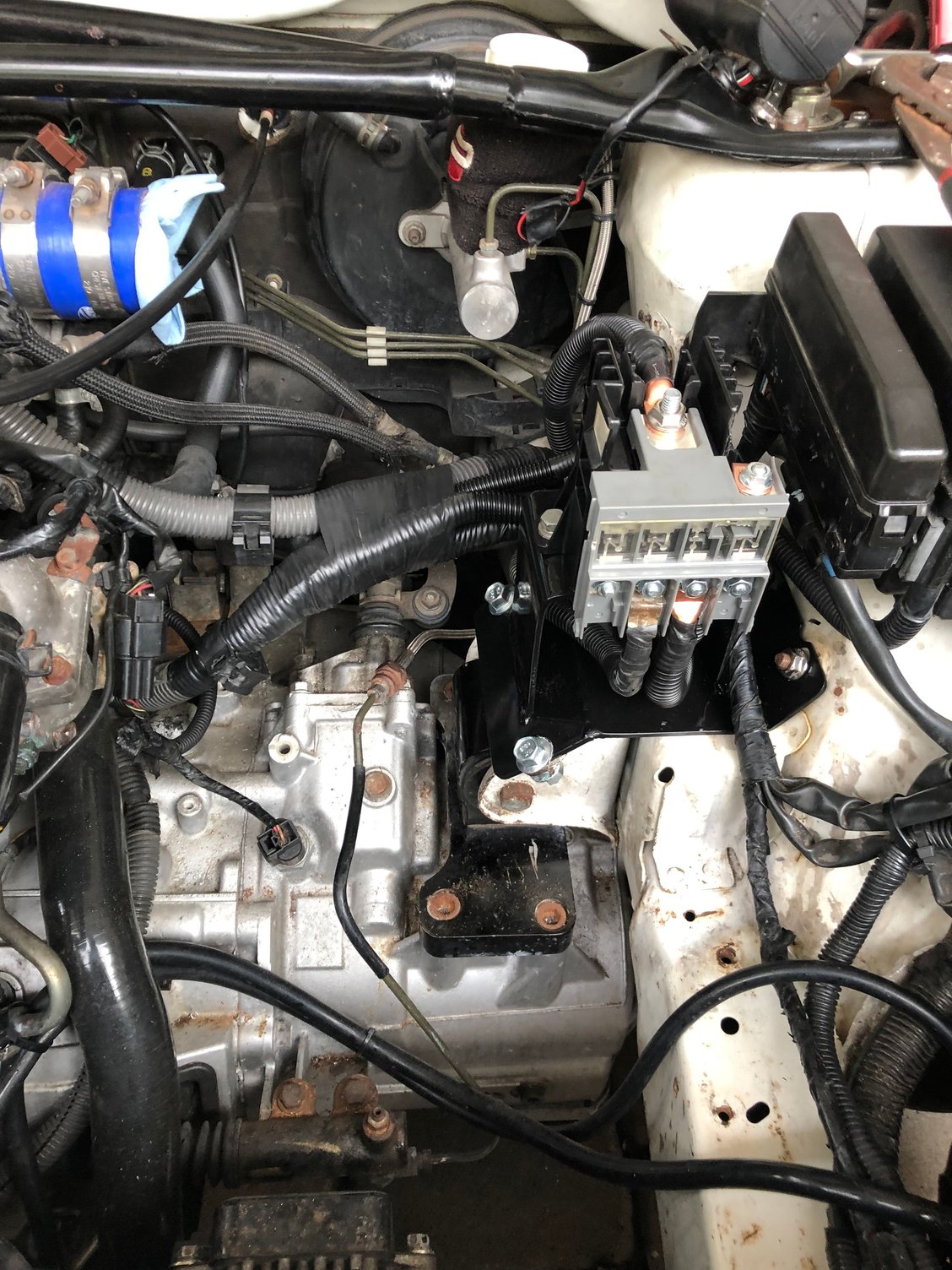 It’s been raining here every day so haven’t had much time to work on it. I want to paint it but humidity is high here now. Spent quite a bit drilling the 2 bottom holes and rethreading since the previous owner broke both bolts in the holes. I think for rushing through it it came out ok. You can see the rats nest back there. All that will be fixed and nicely done with the evo x fuseable link. Hope the wires reach.