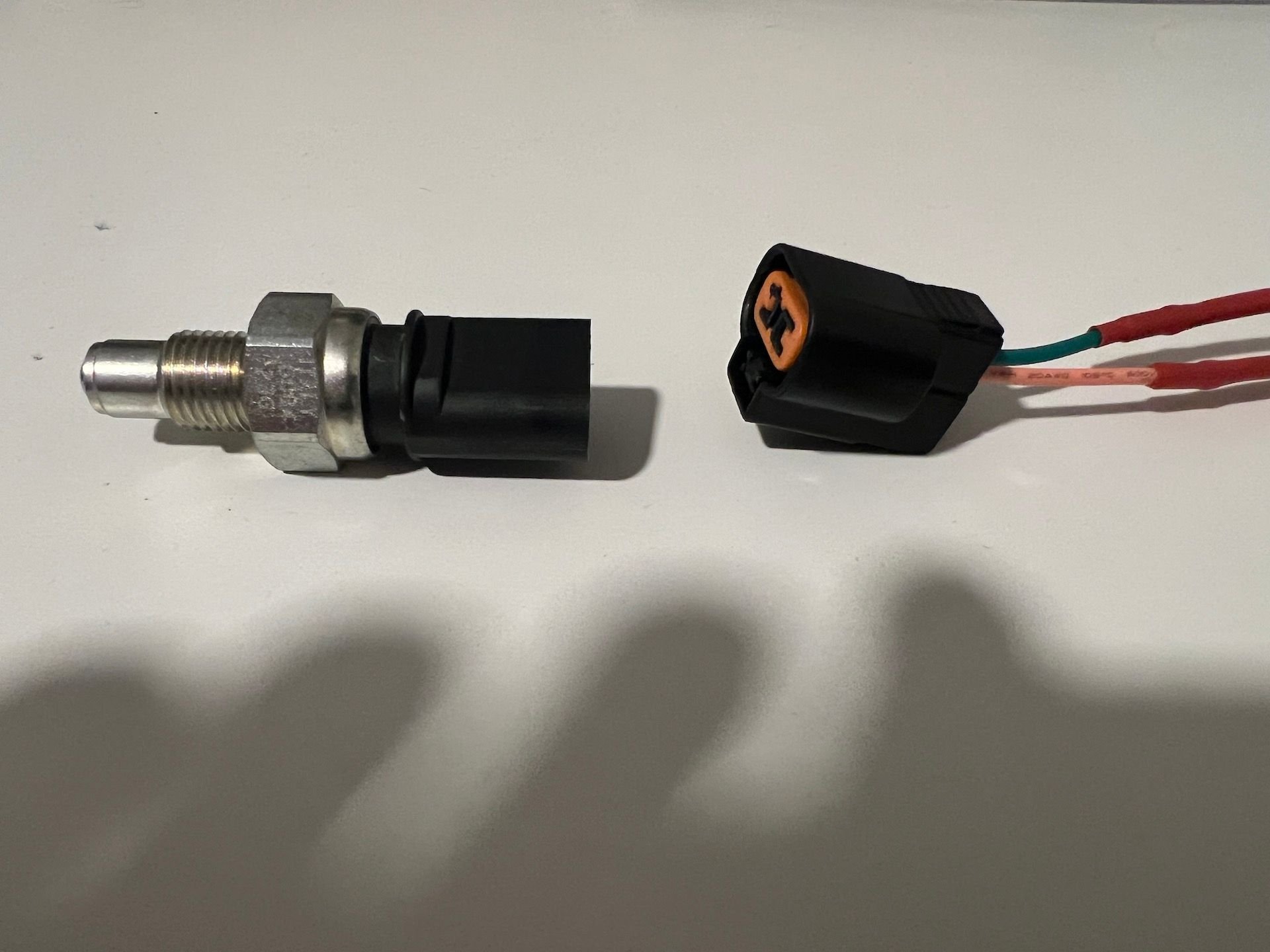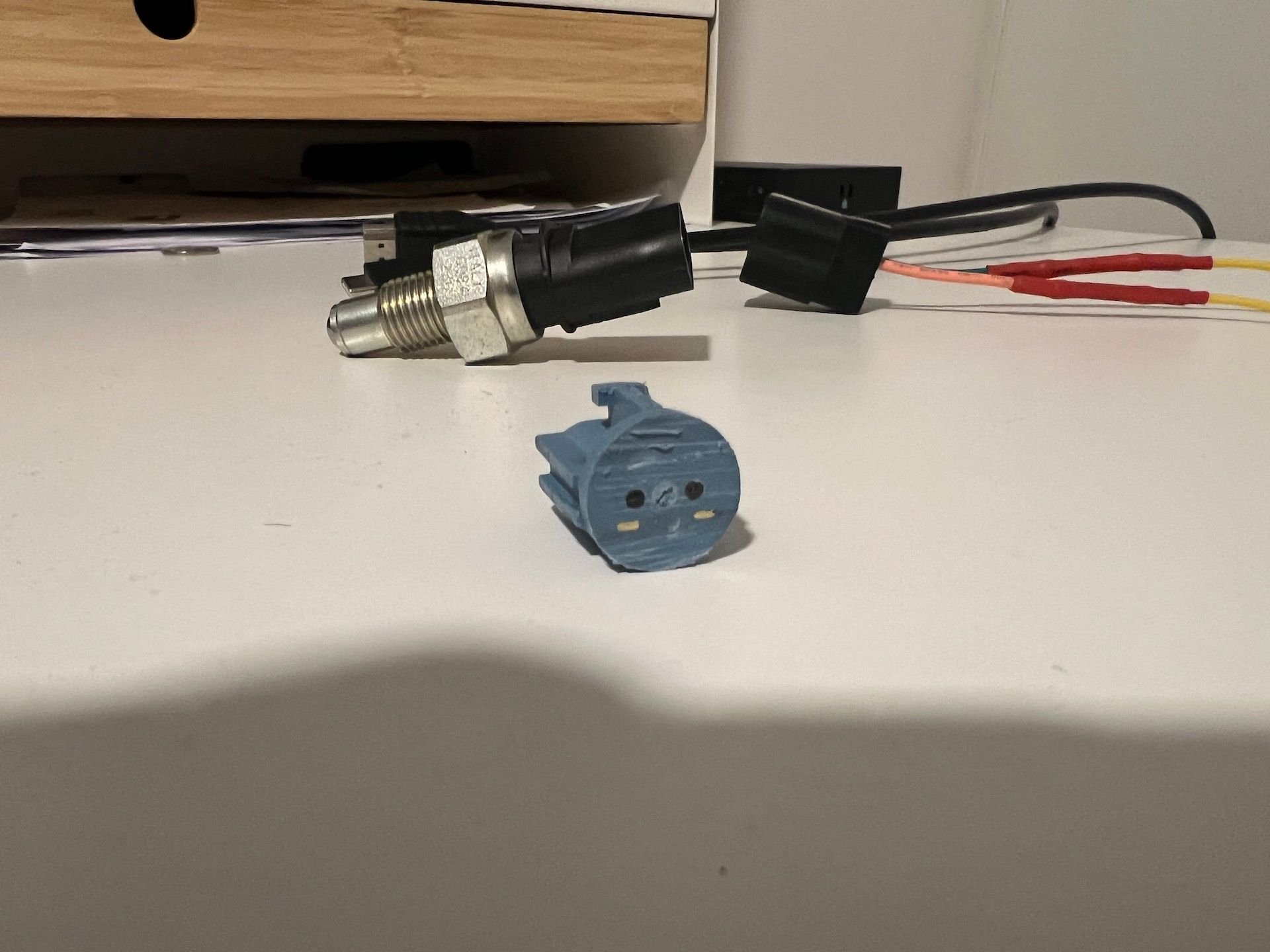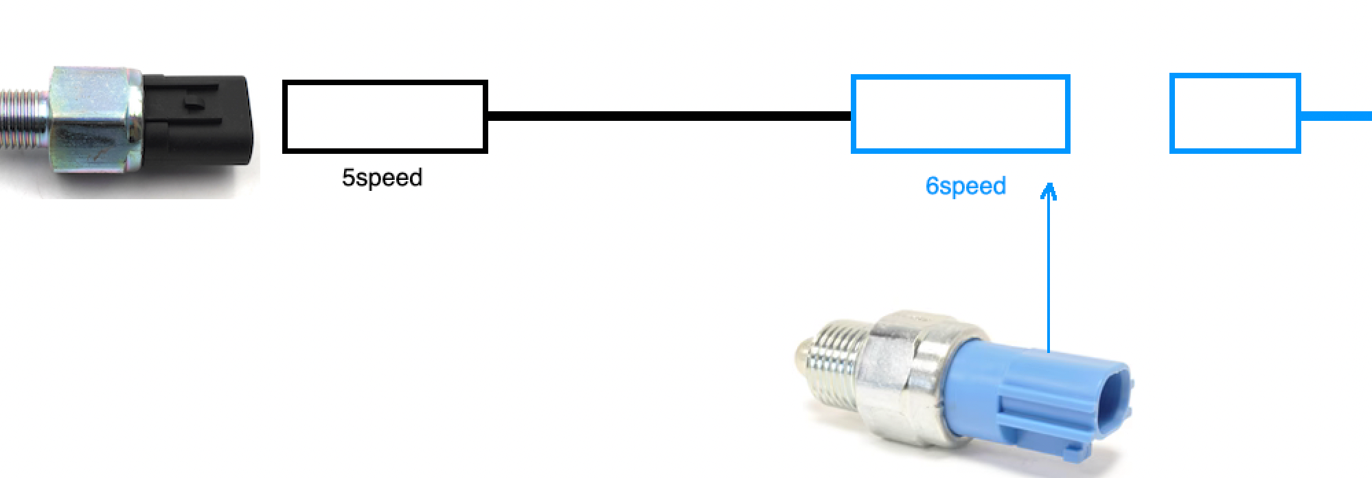 Since I swapped 6speed M/T for 5speed my reverse light sensor became incompatible with rest of the installation. I thought I would be smart and just put 6speed light sensor into my 5speed transmission but it turned out that the "button" in the sensor is not getting pressed by some element of the transmission that is responsible for it. I think it's because of height difference in those sensors. I dont want cut my harness so... I am making an adapter according to this schema: