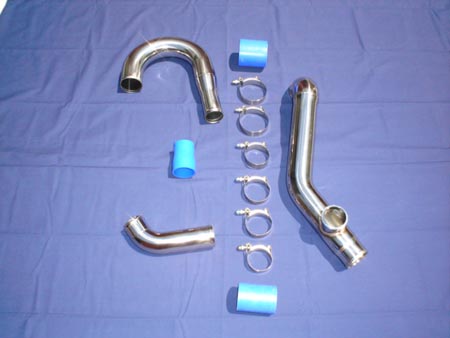 I have no education in fluid dynamics but do conider the fact that the taper, whether it be at the coupling or gradual through the pipe itself is not a restriction. The taper is just there to join the pipe to the outlet pipe of the turbo. The direction of flow is going from the turbo outlet to the the intercooler, not the other way around. So the restriction is a constant when using the stock turbo outlet pipe regardless of where the taper is in the actual lower intercooler pipe. As long as you are getting a solid coupling between the lower i/c pipe and the turbo outlet pipe I think you're going to be ok. Keep in mind that minimizing the amount of couplers used in the pipe cuts down on possible boost leaks. Then again we are dealing with some pretty high velocity here so there is a possibility of a negative effect caused by an immediate transition but I have no education in these matters so I'm just thinking out loud.