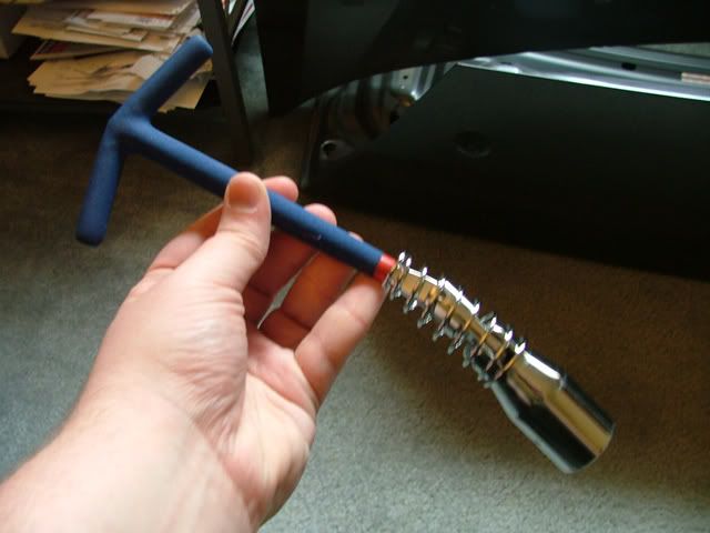 Wrong tool, looks like a 13/16 spark plug tool. That's a great tool for changing plugs on a Z28, not so great for an Evo. You need a 5/8 spark plug socket, ratchet, 6" + extension.
