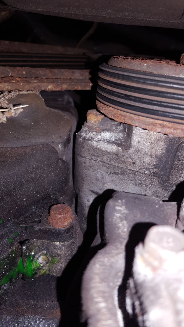 +1/\ water pump has a weep hole and once the bearing fails or seal fails, it will drain from said spot. pull the timing cover off the top and look down between the cam gears. you will see the pump. if the timing belt is wet...stop driving it if you can before you slip the timing belt and slap all the valves and have a bigger problem.....