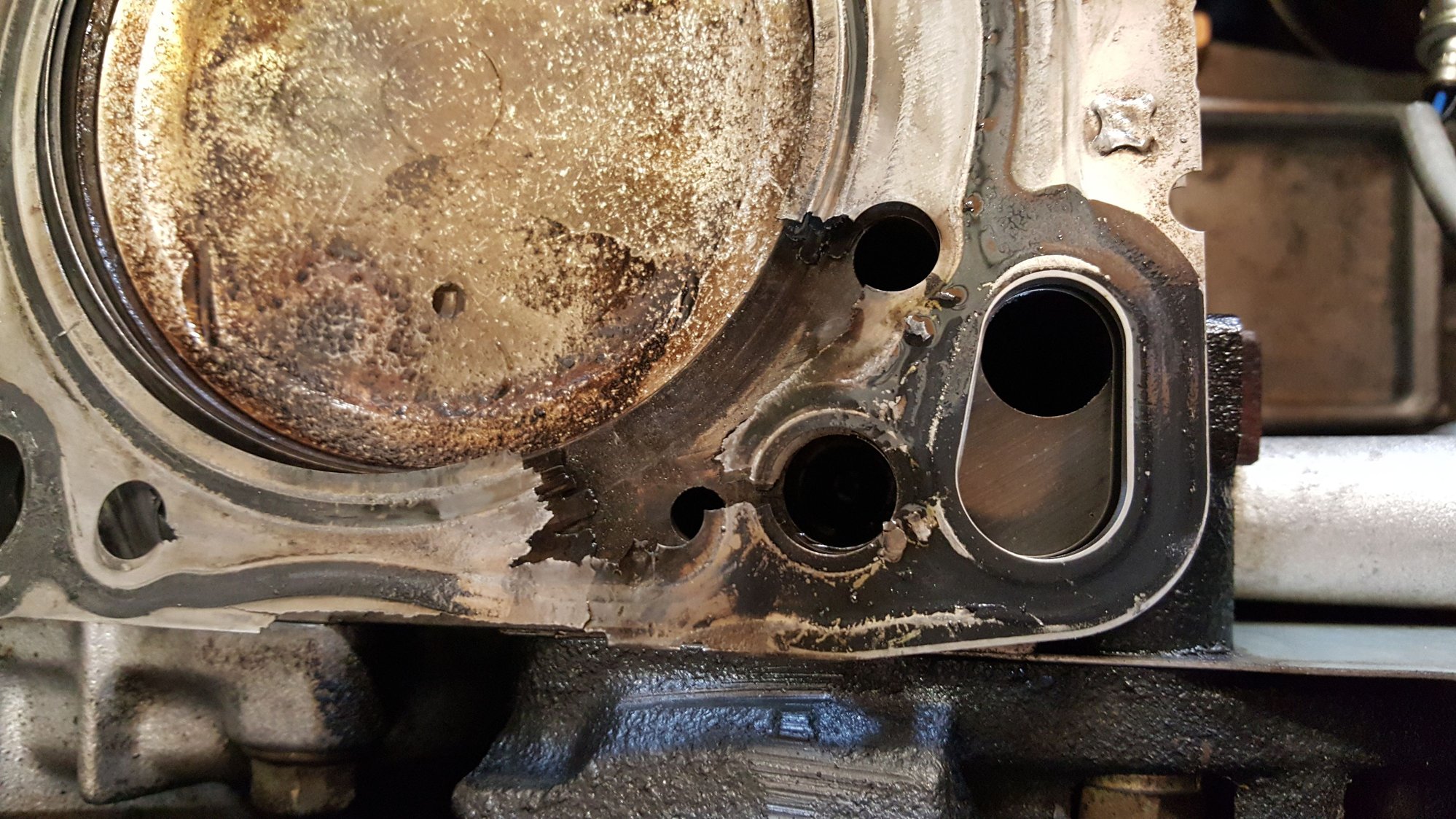 He said the head bolts were only hand tightened so I'm guessing the head bolts were loose and the head was lifted.