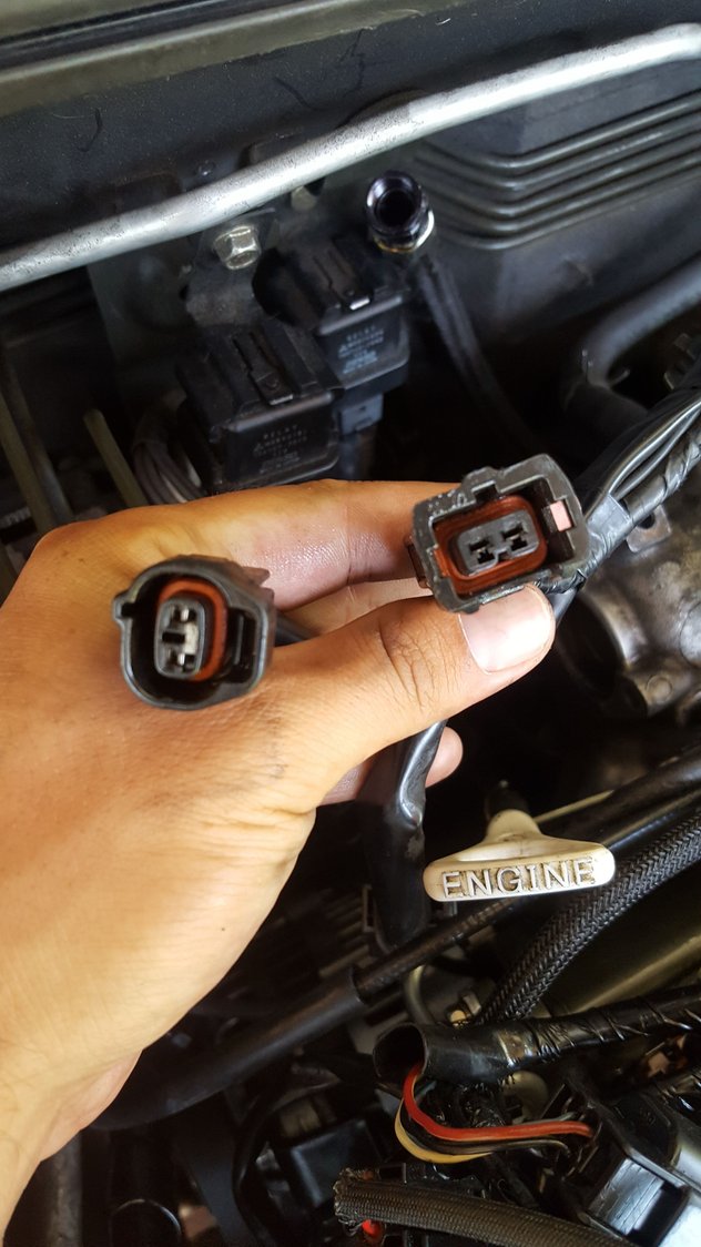 The one of the left is identical to the mivec solenoid connector and the one on the right is identical to an injector connector. There's a 3rd one that's brown color but I'm sure that's the egr solenoid. (Which has been deleted)