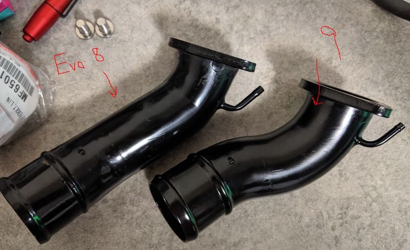 I also think you have an evo 9 outlet pipe. IIRC, evo 8 pipe is longer than evo 9. Measure the length of your pipe and maybe someone on this forum has their's out and can measure to compare. I have one somewhere and if I can find it, I'll measure length too.