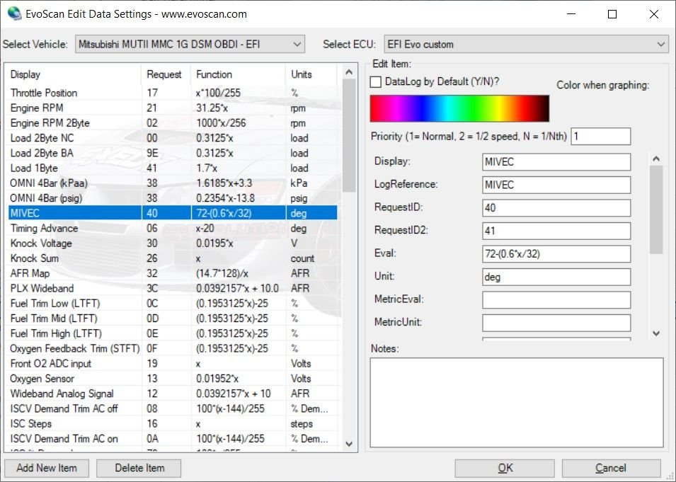 I have a few datalogs with timing advance and MIVEC datalogged. Would that help? Not sure what I should be selecting in EvoScan re: cam position desired vs actual. Should I compare the timing advance in the datalog (actual) to the tune xml (desired)?