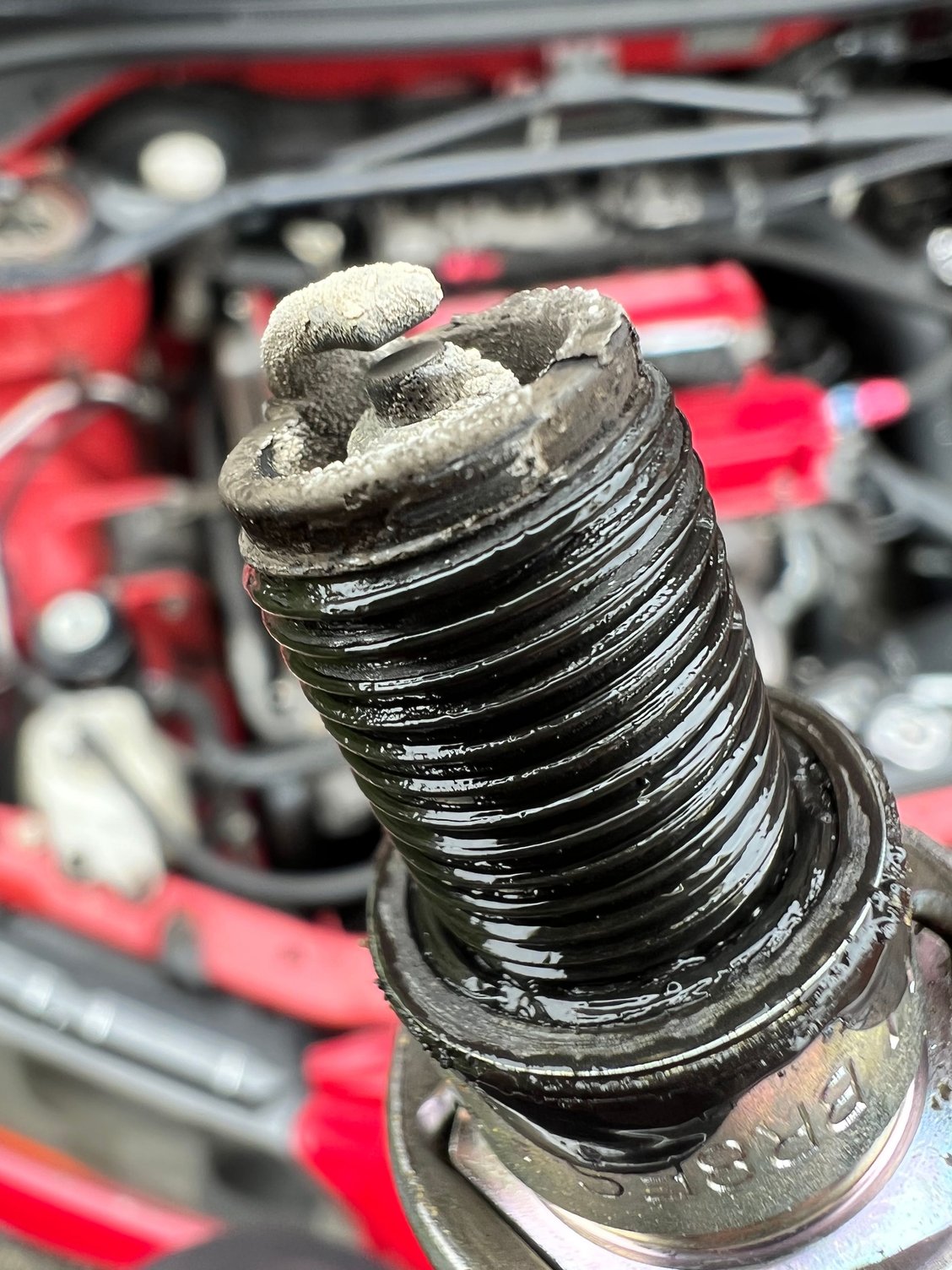 Ive removed all the spark plugs and noticed 2 plugs looked like the photo attached. Any advice on whats causing this? I also noticed the 2 cylinders the dirty plugs came from, have a bit of fresh oil on top of the cylinder, Im assuming its the spark plugs seals in the rocker as its directly below the plugs.