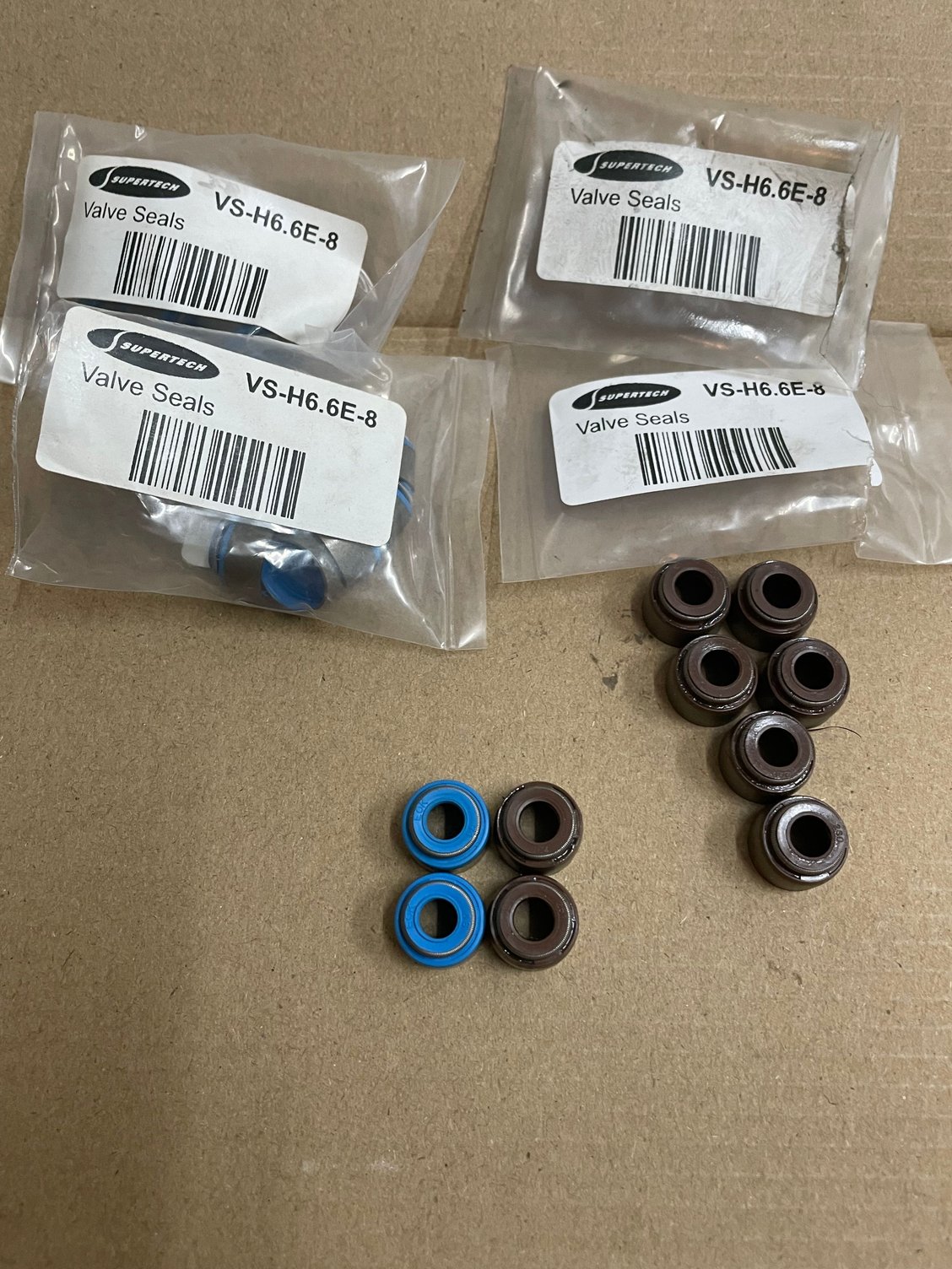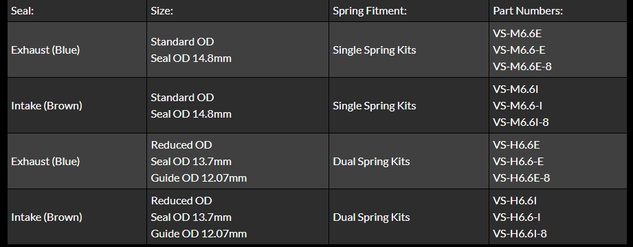 Okay guys, I ordered a Supertech valve spring kit (SPRK-M1007D-3). Came with 16 BROWN valve seals with the part number VS-H6.6E.