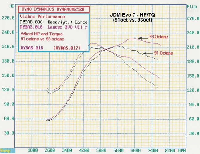 JDM Evo 7 HP/TQ - 91 vs. 93 Octane
