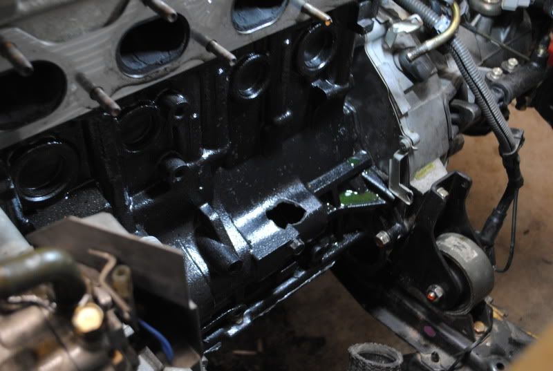 it made about a 1" x 1" square hole through the block. When the shaft fell out and did that, we had pulled oil pan, saw it came out, so we switched to a stub shaft, put it all back together an started it up. ran fine for about 5 mins idling to warm up until we noticed so much smoke from under the turbo, and finally saw the hole in the block.