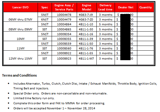 Sooooo..... got an email today that Mitsu is doing a crate engine sale for IX and X engines.