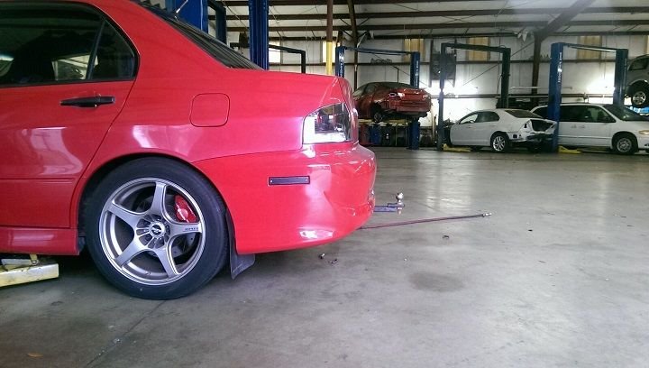 Here are some pictures of my daily driver with the 03-06 Outlander hitch. As you can see I have a full size muffler (Tanabe) so modification is mandatory. The upright on the passenger side of the hitch has to be cut back roughly 2 inches to clear the body of the muffler. This really needs to be done with torches if you want to do it in a reasonable amount of time as the metal is quite thick. I then reinforced it with a brace to help compensate for any loss from that 2"X3" sectioning.