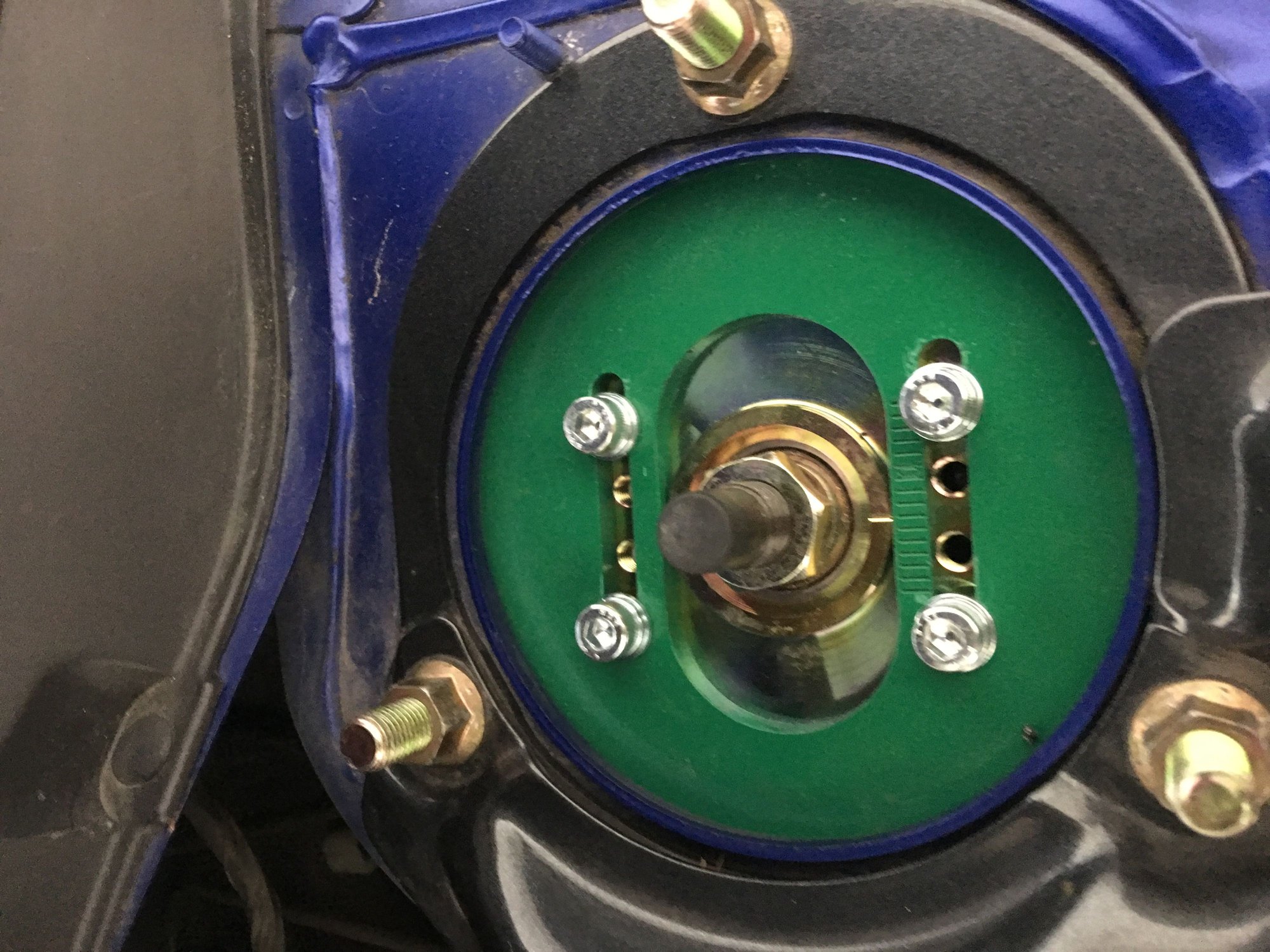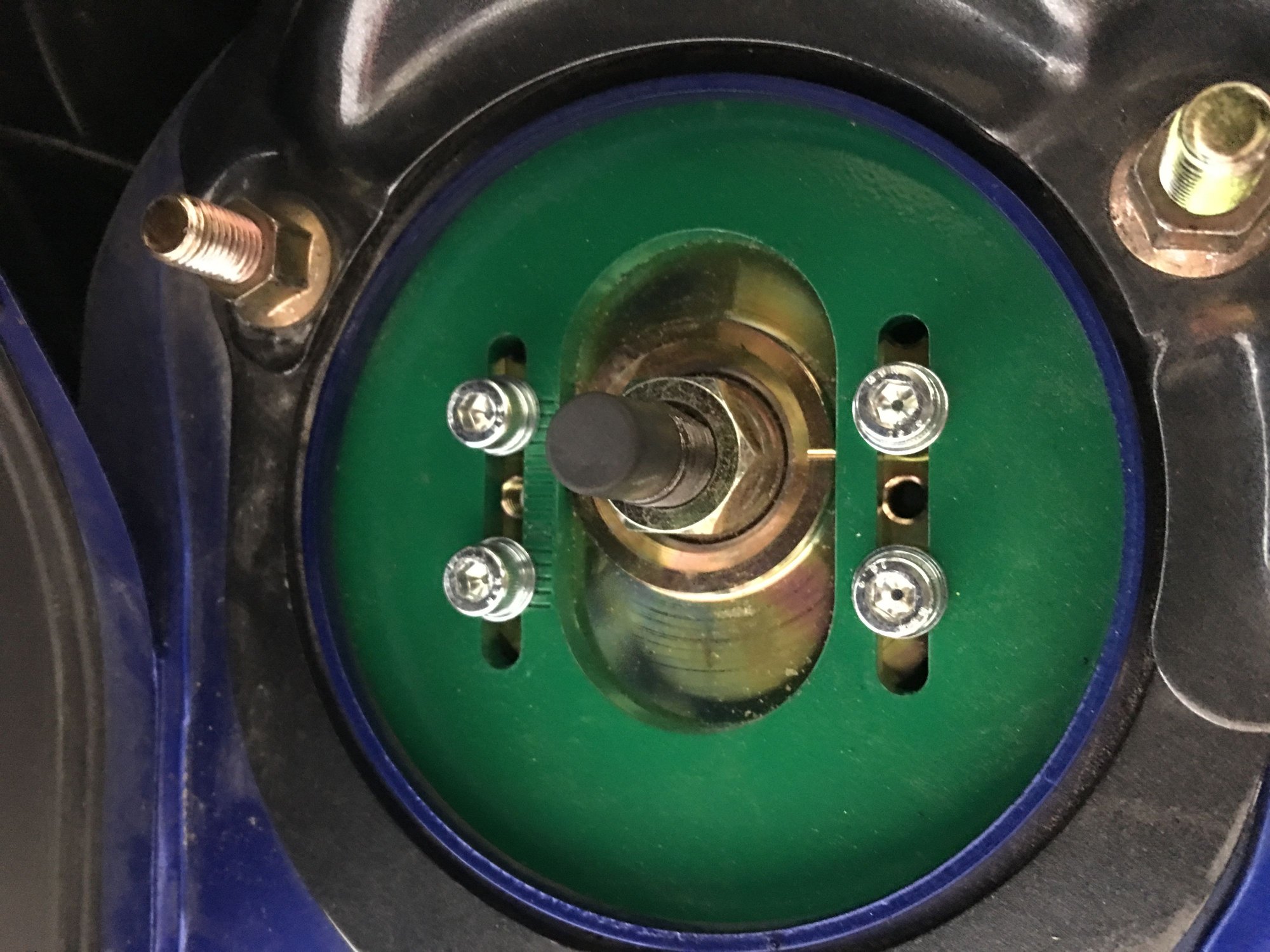 Not a big deal, but a good alignment shop would position the upper camber adjustment in the same position left & right. Also, looks like the allen headed bolts were installed in the avail holes