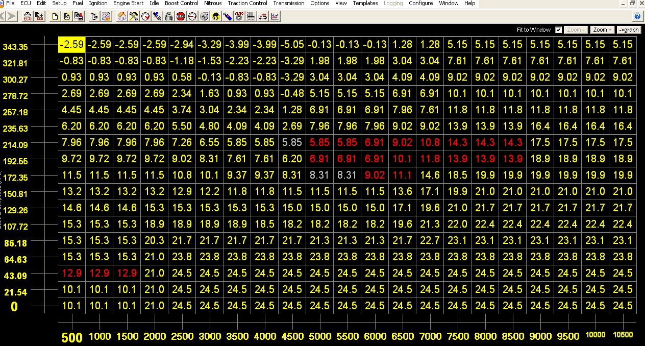 could someone please help me on ignition timing. car is running aem ems,6765 turbo, gsc s2 cams. i need to tune it till 1.3 bar on 93 octane heres my ignition map. it runs ok on 1 bar but sometimes misfires around 6500-7200 rpm after 4-5 runs. if i am using bad timing please let me know.