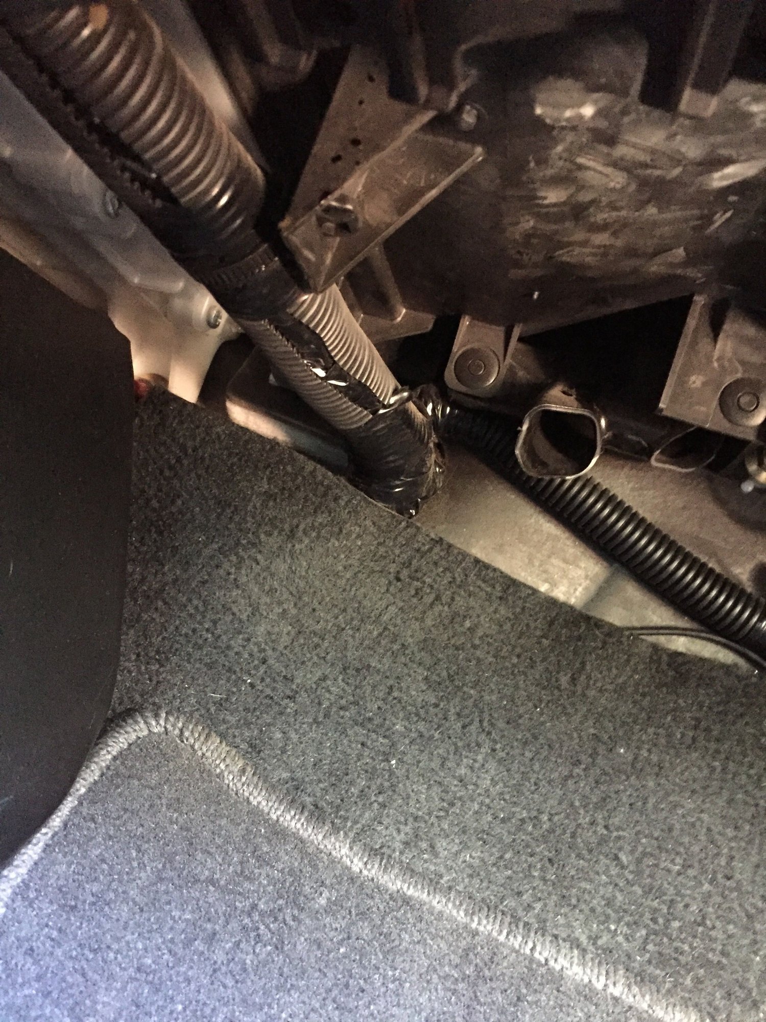 Back when I bought my 2003 the gauge package was a dealer option. Dealer options were sometimes installed by the sales department. So, picture a car salesman installing your gauges. The line could be anywhere but I'd guess in the grommet behind the glove box.