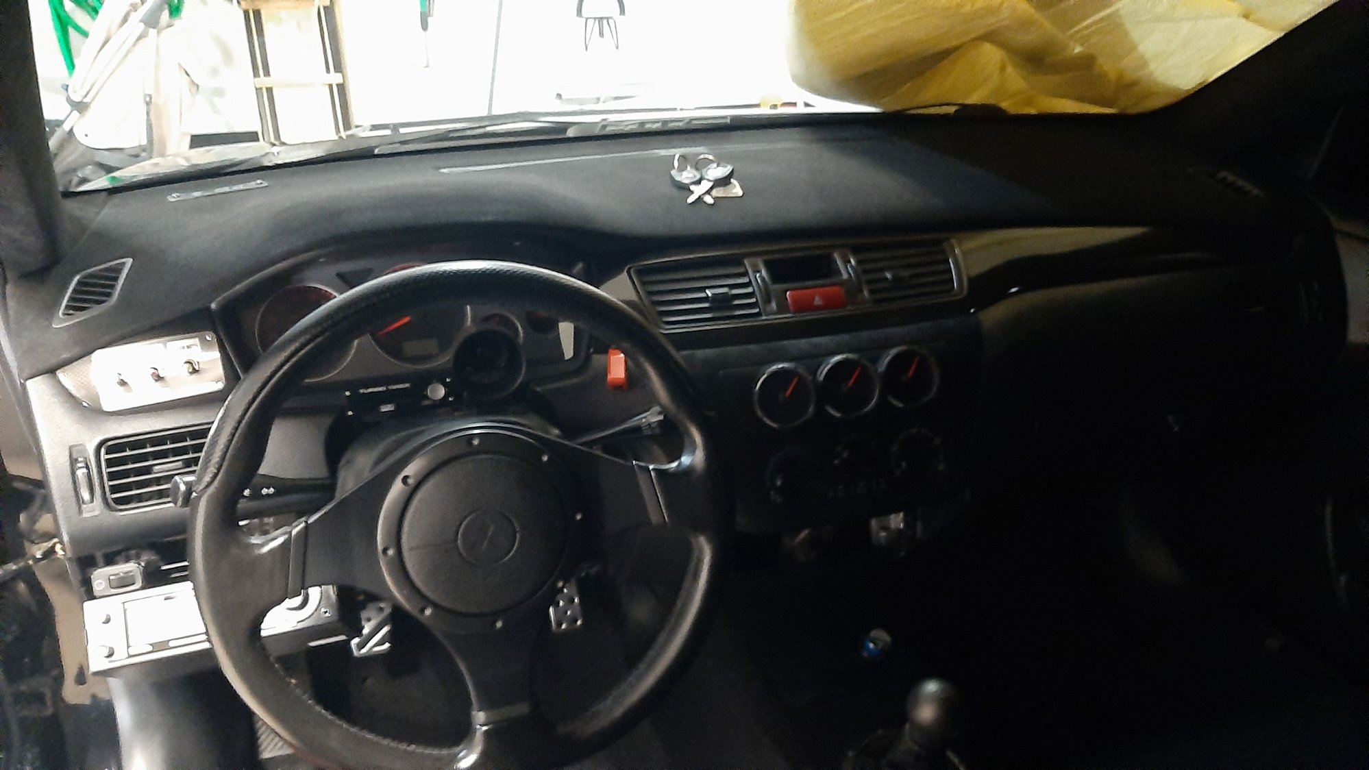 I sort of went flock crazy since I loved it so much so I did my dash, center console, pillars and black headliner, triple defi red racer gauges and waiting on my stack AFR gauge, also getting another switch panel done below climate controls..relocated radio in the glove box.