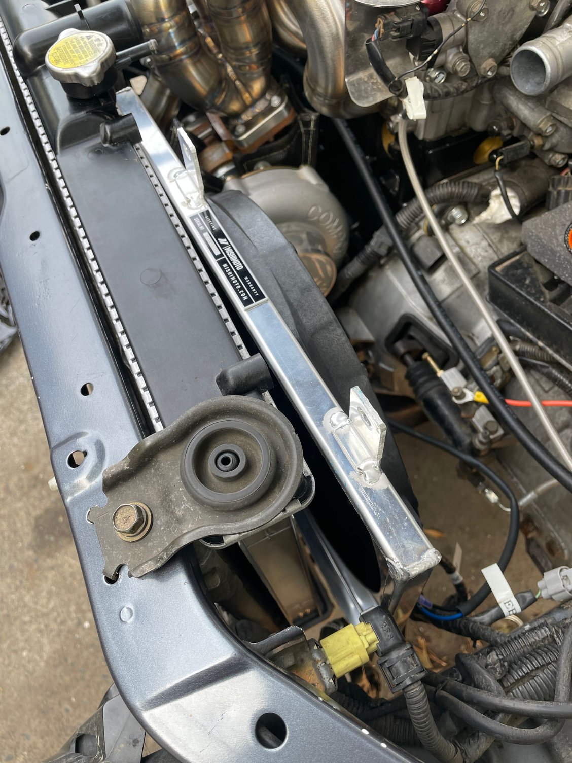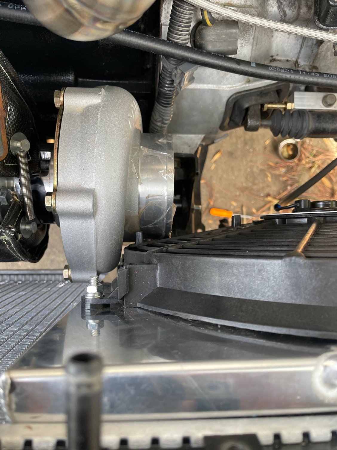 Got an issue. Turbo kit is a Morrison Fab T3 Standard placement setup with a compturbo 6767. Switched back to a OEM Setup with a mishimoto slim fan + shroud combo. The fan will not fit (please see pics below). Only got it due to the oem fan was way too big. Please see pictures below. I know another option would to go with the Sheepey CSF slim radiator with the built in fan w/shroud, but would like to avoid as I already spent money on this setup. Any help would be appreciated.