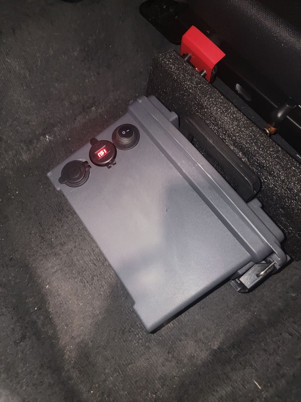 I have a backup battery instead of a relocated fullsize battery (not for racing). I used a HF ammo box. I 3d printed one for my PC680 which looks cool but I dont have a pic right now. plus I need a powersport battery that matches the one in the engine bay for just in case