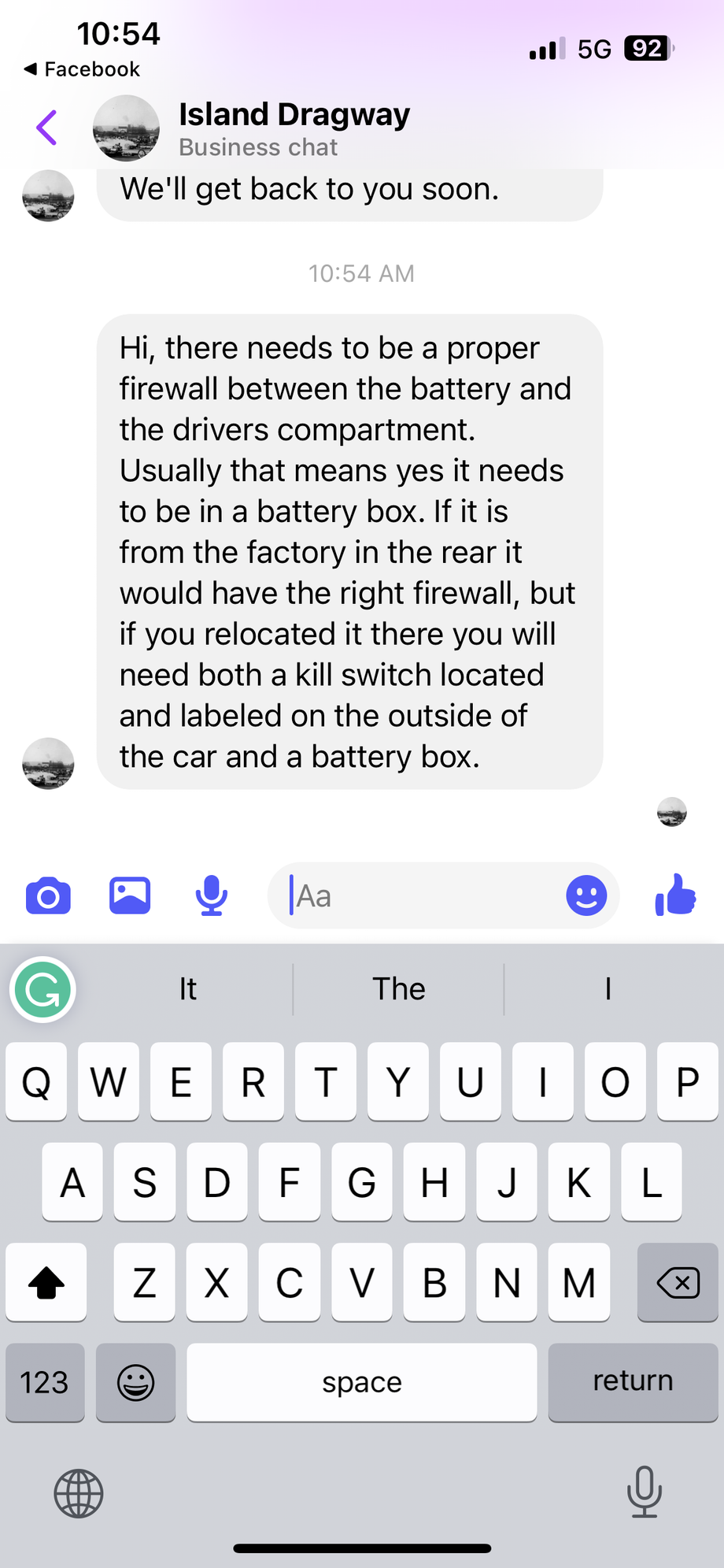 I put a full-size battery in the trunk. I want to go to the 1/4 track. I ask them and they said this. Is there a way around this? Has anyone had an issue with this?