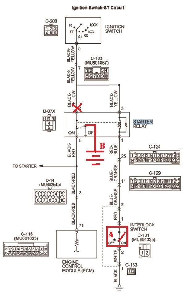 I was just checking over and on the Evo 5 the wire goes from the ignition switch to the starter solenoid [relay] with no relays inbetween