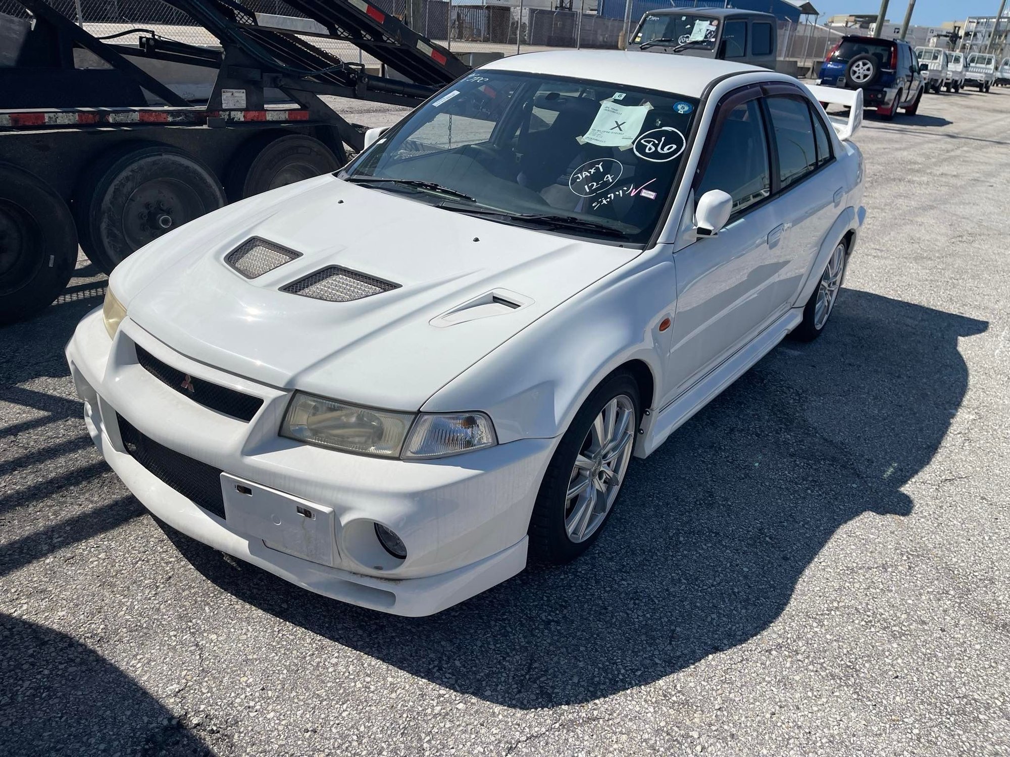 Landed on US soil!! My car also had a shipping buddy, the RalliArt in front. (Available if anyone is interested in an Evo IV)