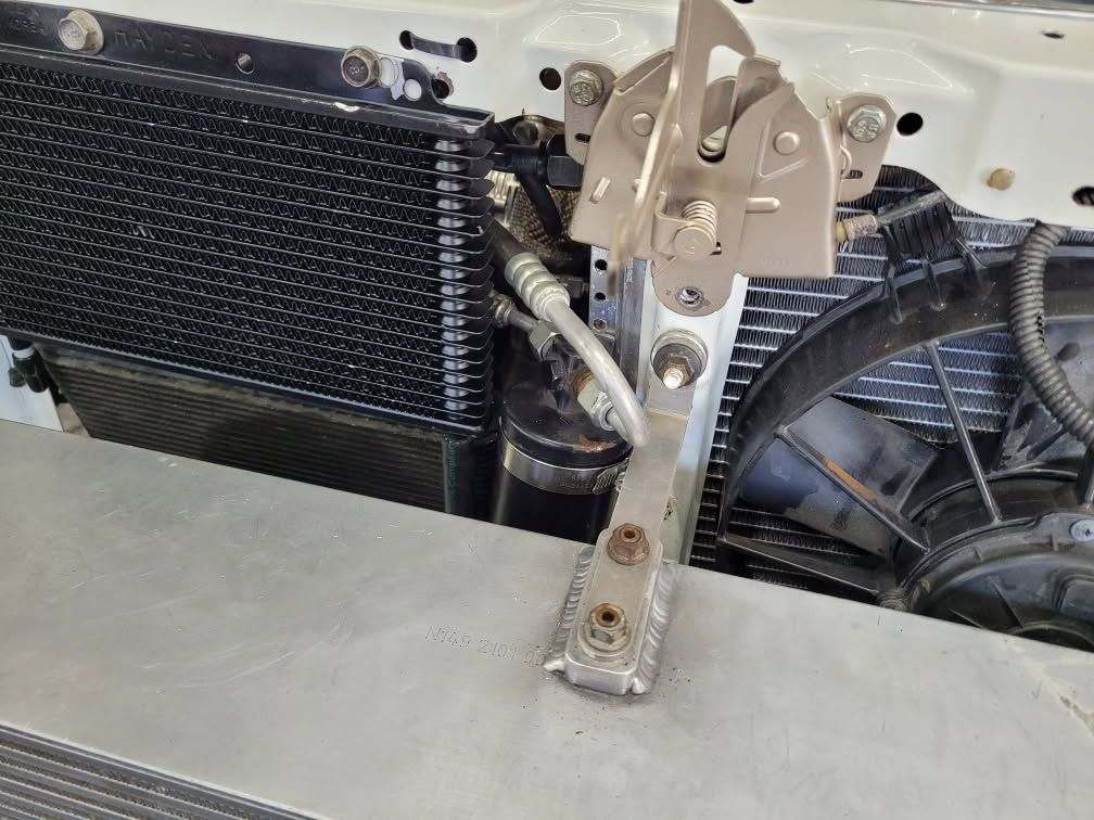 Using the unused space for oil and power steering coolers. Oh yeah can we say ac is back yay.