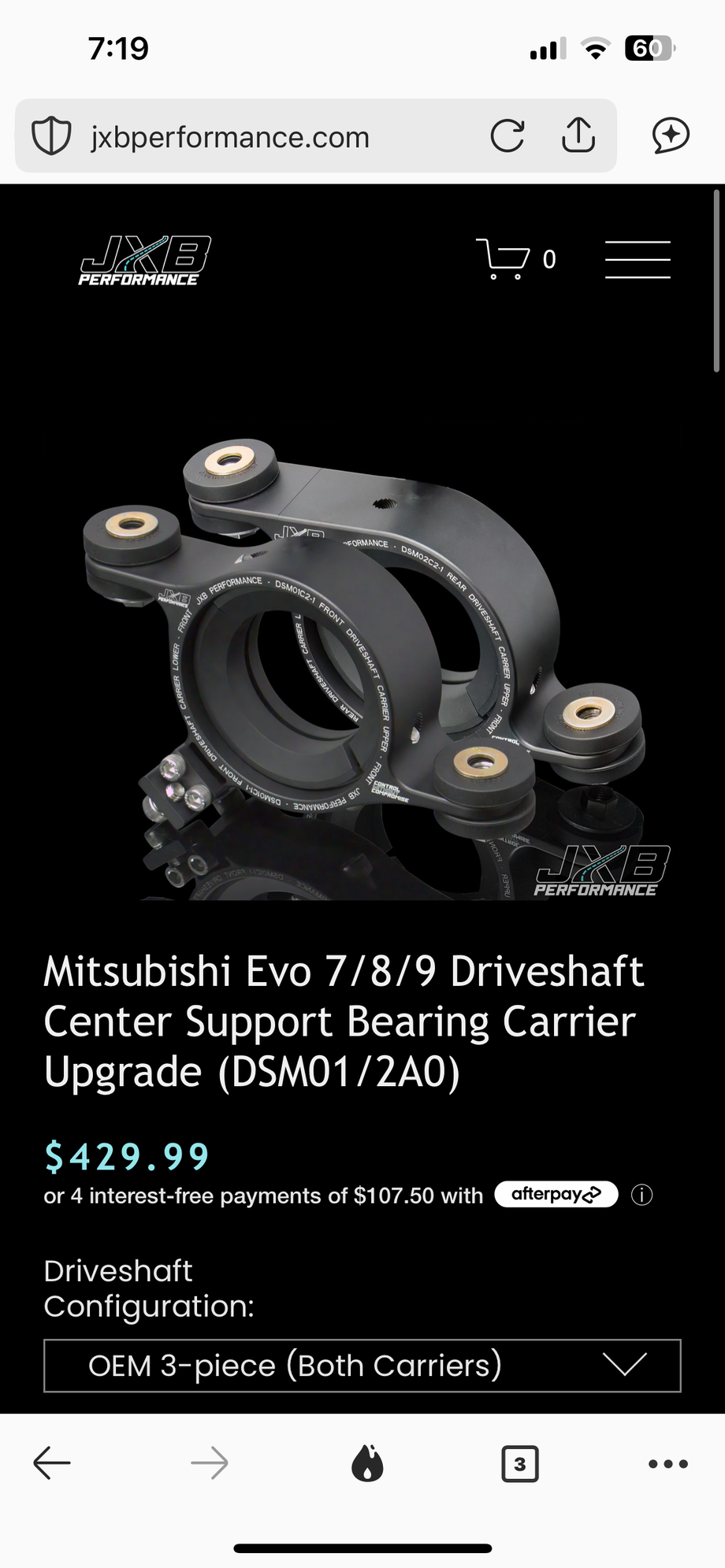 I recently installed the JXB Driveshaft Center Support Bearing Carrier (street version) on my 2006 Evo. After the installation, I began experiencing a vibration coming from the rear of the vehicle.