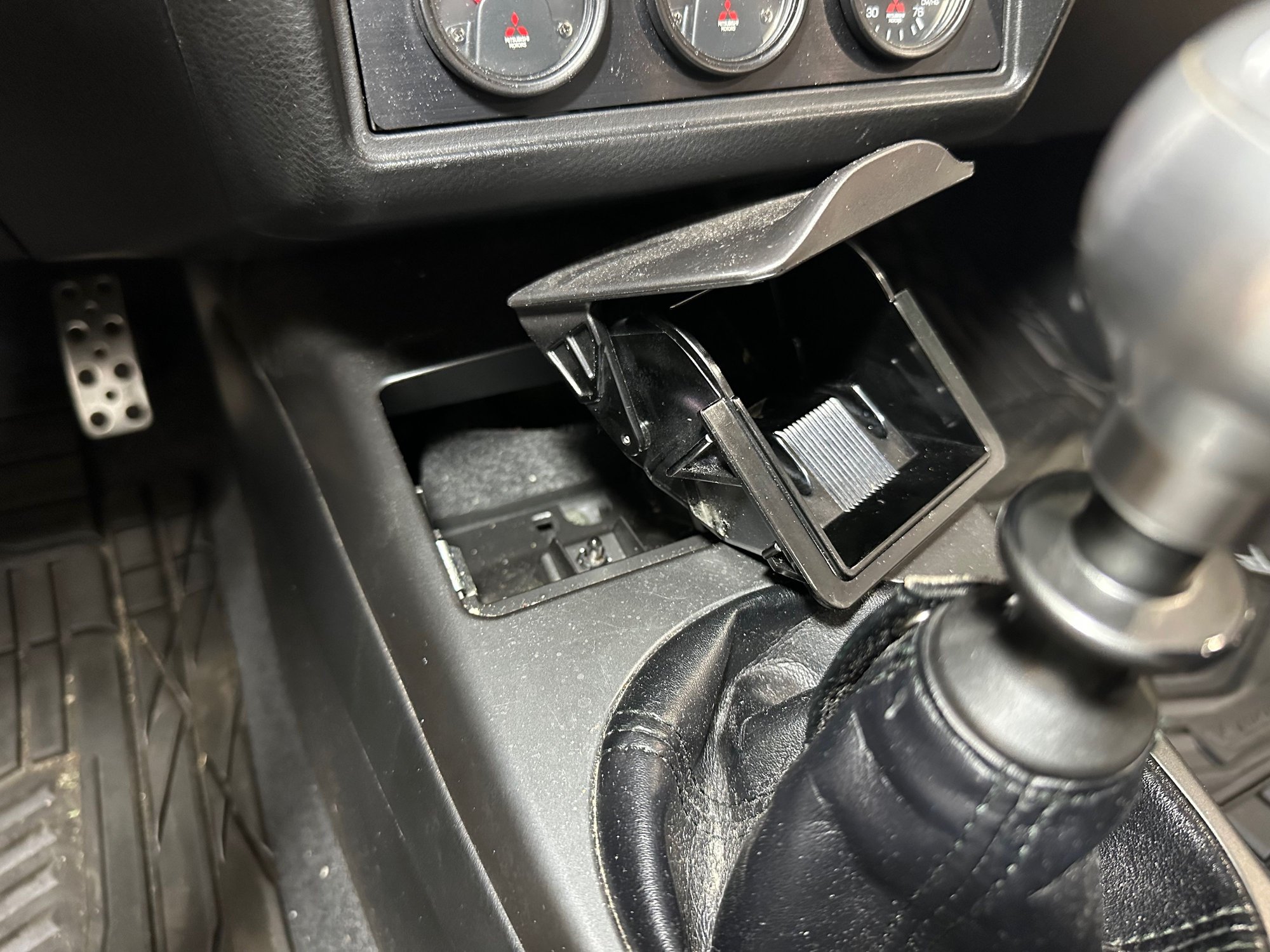 There is one clip on the driver's side of the shifter surround hidden in the footwell that needs to be removed. This is actually a separate piece from the shifter surround but I found that removing it alongside the shifter surround was easier.