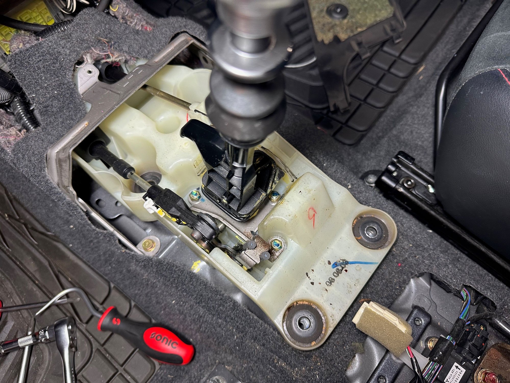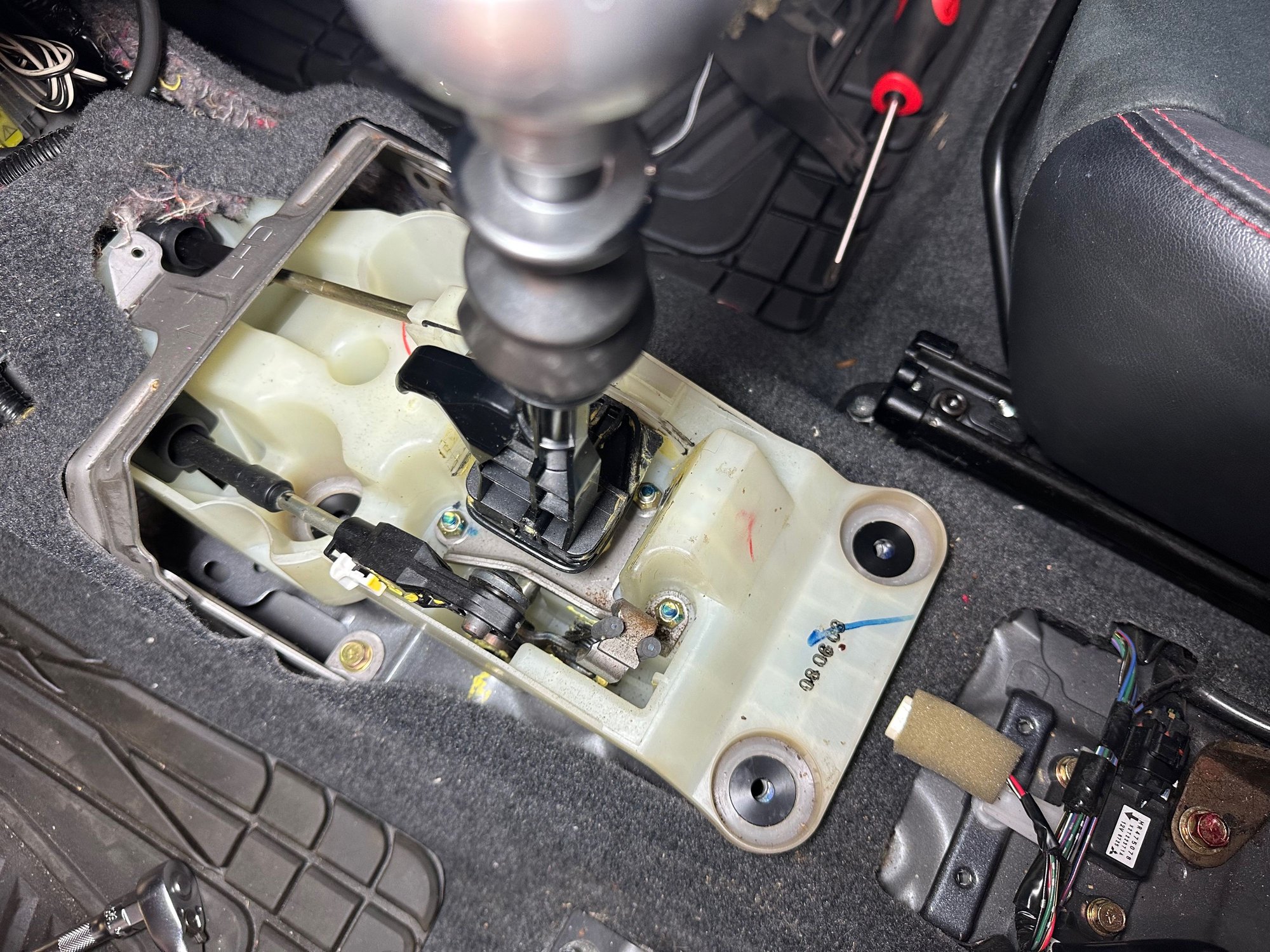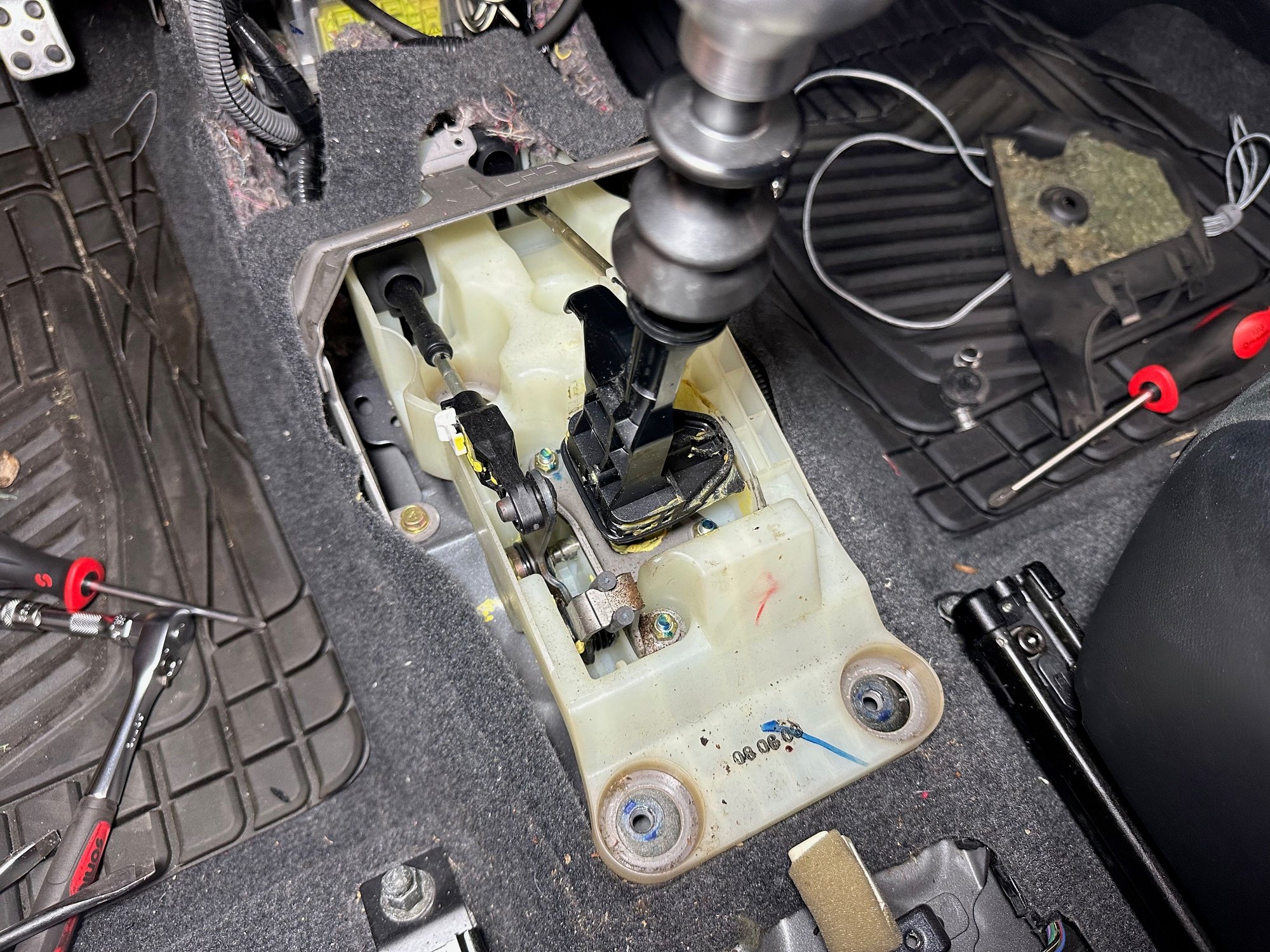 With the shifter surround removed the shifter assembly is now exposed.