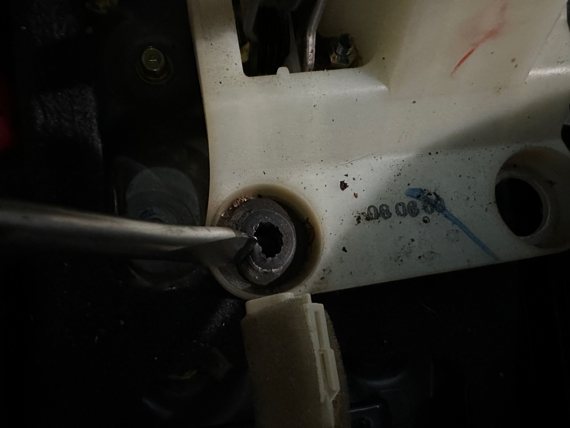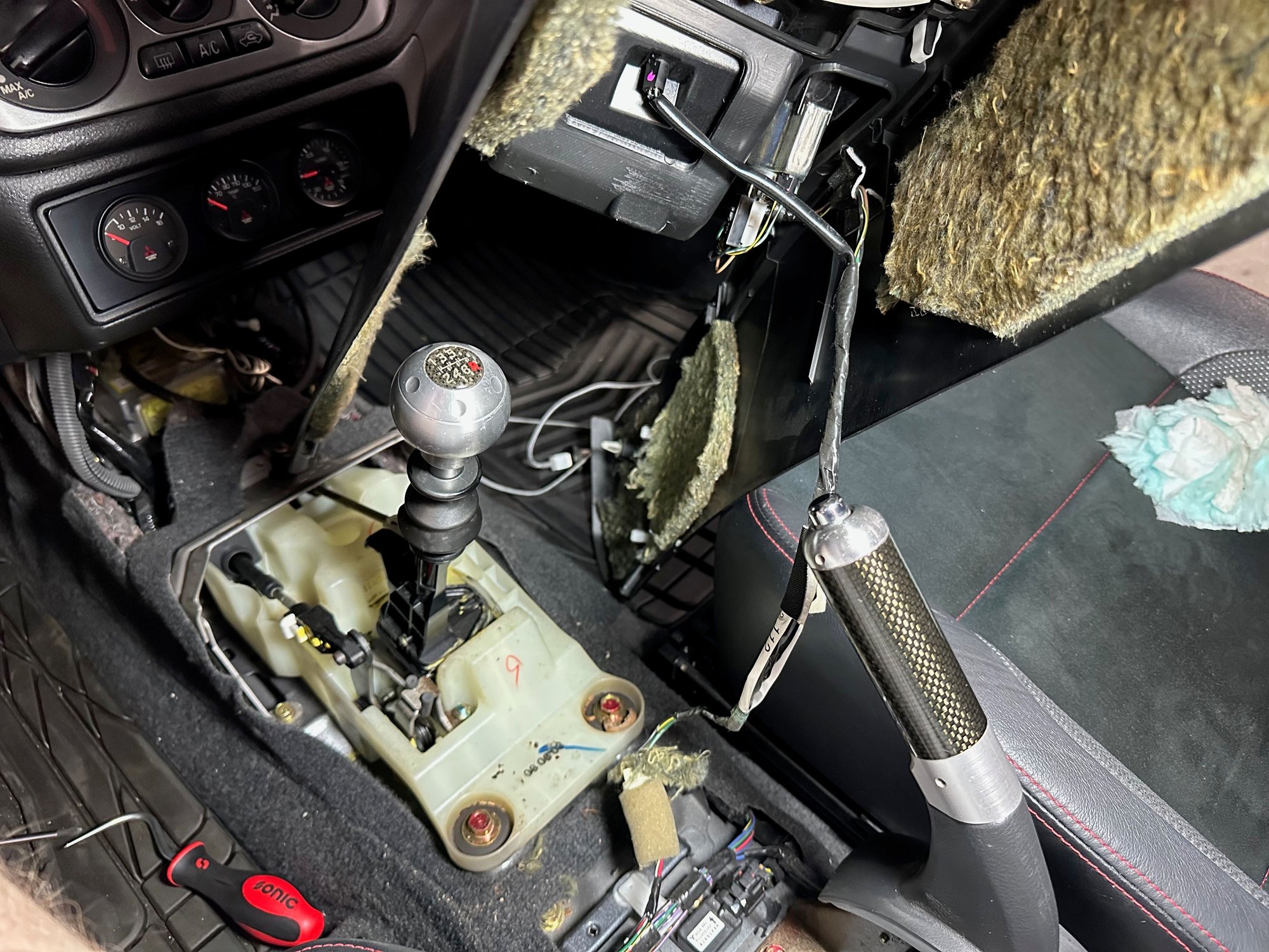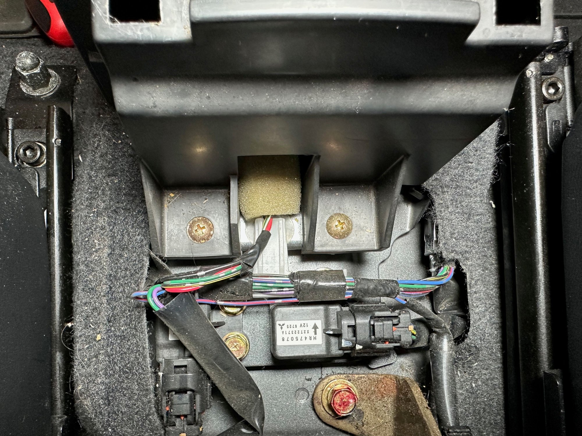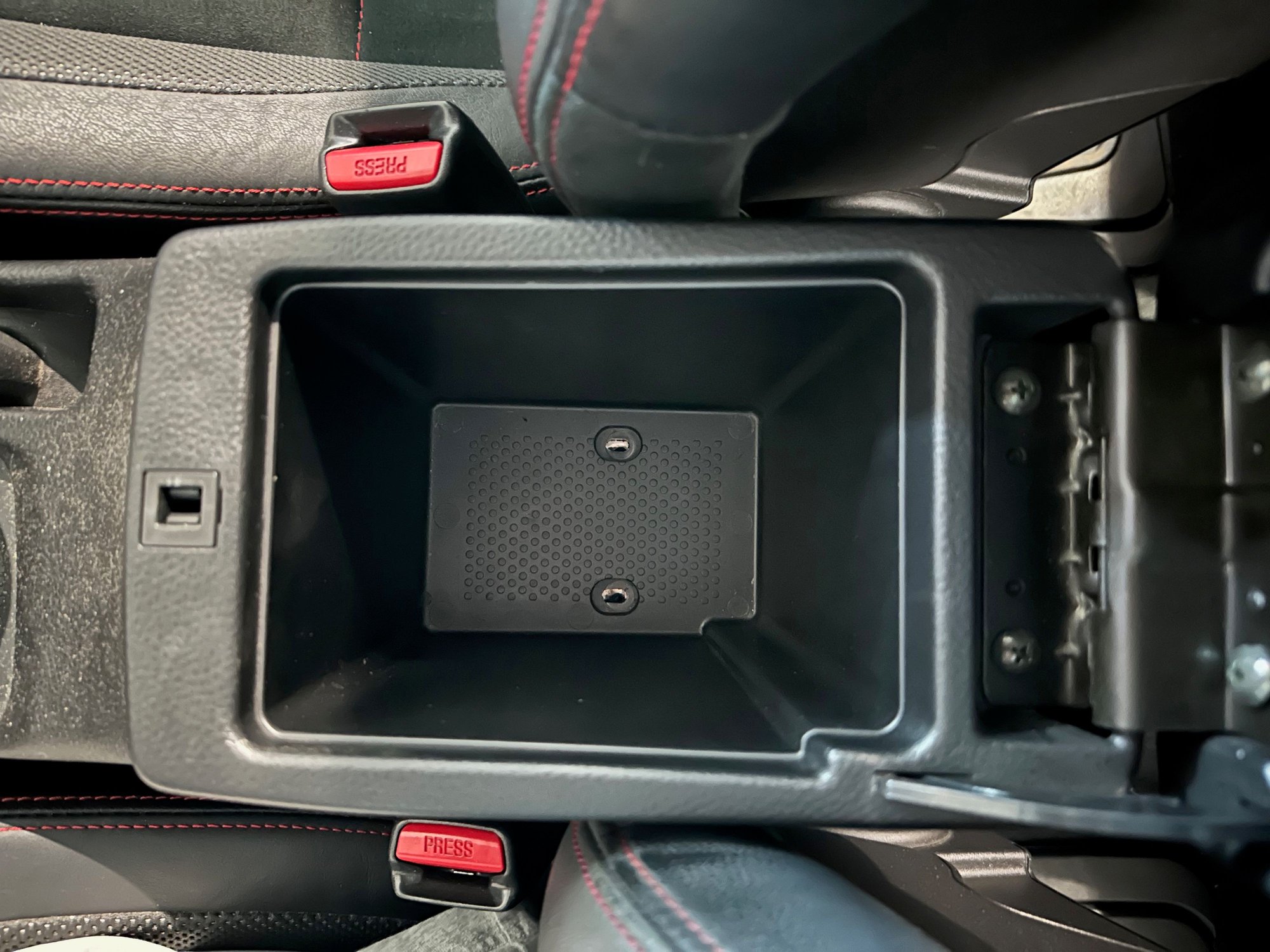 Once the screws are out the arm rest can be removed entirely. There are two clips that connect it to the shifter surround that pop out easily.
