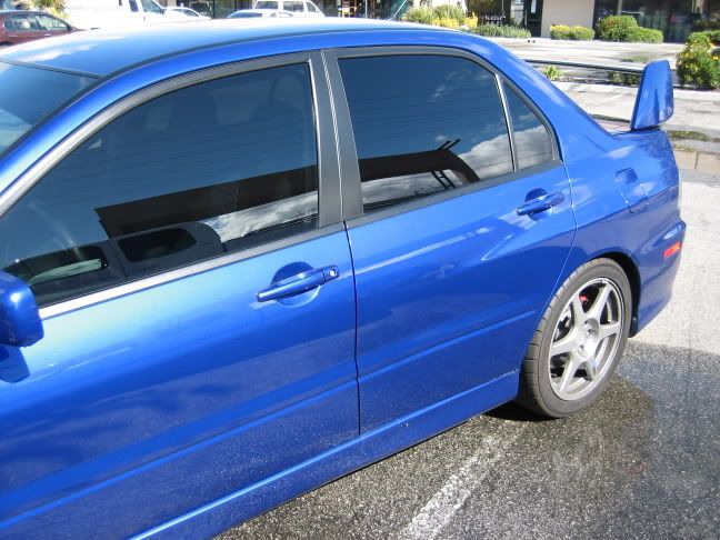 i'm thinking about getting tints on my evo, but i would to see how they look. Please post pictures of any electric blue evos with the tint %.