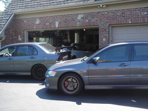 I want to have 3 evo's one day the Daily Driver, the Drag car, and Time Attacker Very Nice man all so clean and whats done to them? and that white AMS one in the garage ?