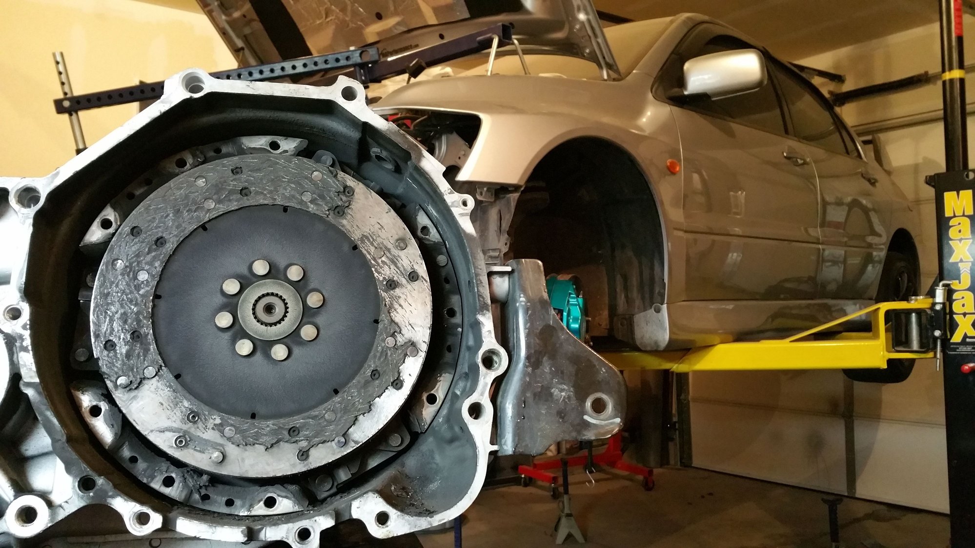 At the end of summer I thought it would be a good time to familiarize my wife with launching something as finicky as an Evo. She got many good launches in, but it did finally come to an end. :-D The clutch did last a fair amount of time... hundreds of street pulls, about 15 street launches, 5 drag strip launches, 10 auto-X launches, and 3 time attack launches. I also downshift excessively